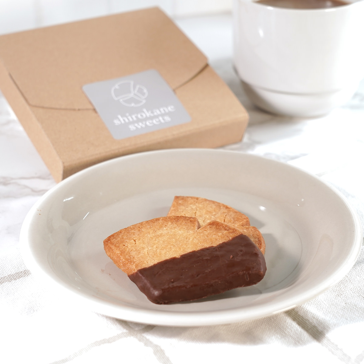 shirokane sweets TOKYO/白金スイーツ(シロカネスイーツ)の「白金プラチナサブレ ショコラ」です。「shirokane sweets TOKYO」は、閑静な住宅街「白金台」の一角にある、美味しい季節のフルーツと、原材料のこだわりがコンセプトのスイーツ専門店。白金台の代名詞「プラチナストリート」は日本有数の銀杏並木が有名です。本品は、その銀杏をイメージして、パティシエがしっとりした食感とバターの風味を重視し、上品に仕上げたプレミアムサブレ(Premium Sabre)です。おやつ、お茶菓子、ティータイムのおともなどとして、食感とバターの風味を楽しめるshirokane sweets TOKYOの逸品をお取り寄せでお楽しみください。個包装されているので、おすそ分けにもおすすめです。