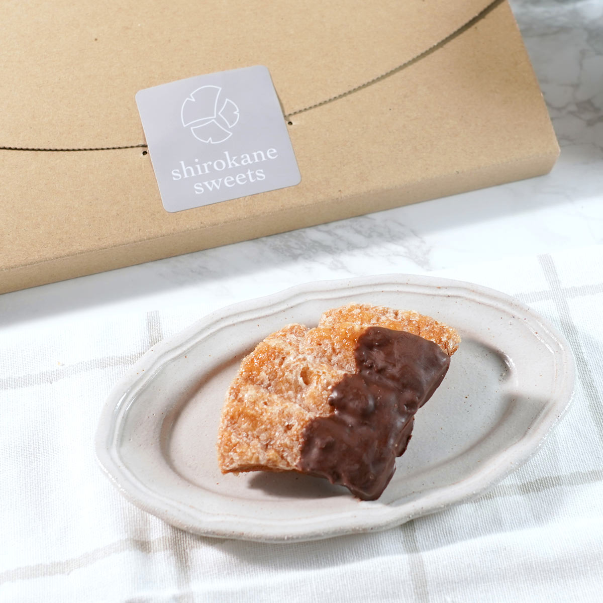 shirokane sweets TOKYO/白金スイーツ(シロカネスイーツ)の「白金プラチナリーフパイ ショコラ」です。shirokane sweets TOKYO」は、閑静な住宅街「白金台」の一角にある、美味しい季節のフルーツと、原材料のこだわりがコンセプトのスイーツ専門店。白金台の代名詞「プラチナストリート」は日本有数の銀杏並木が有名です。本品は、その銀杏をイメージしたプレミアムリーフパイ(Premium Leaf Pie)です。shirokane sweets TOKYOのパティシエが、パイ生地の原材料を厳選し、上品なリーフパイに仕上げました。おやつ、お茶菓子、ティータイムのおともなどとして、食感とスイーツの風味を楽しめるshirokane sweets TOKYOの逸品をお取り寄せでお楽しみください。