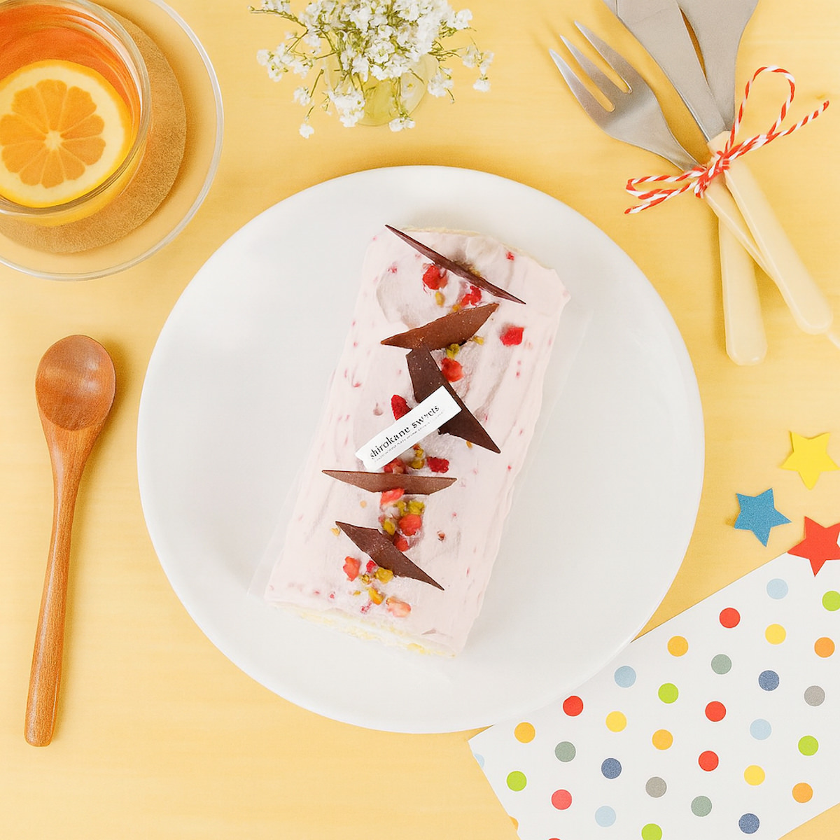 美味しい季節のフルーツと原材料のこだわりがコンセプトのスイーツ専門店”shirokane sweets TOKYO/白金スイーツ(シロカネスイーツ)”のパティシエが1つ1つ手作りした「白金クリームロール 苺」です。しっとりした舌触りの良い生地にカスタードクリームと生クリームを使い、パティシエが最も美味しいと考える黄金律で2層のロールケーキに仕上げました。しっとり滑らかな食感をお楽しみください。北海道産の生クリームも加えることで、さっぱりした中にもコクを増したクリームに仕上がっております。生地の外側にアクセントの酸味が際立つ苺の生クリームを追いナッペした、甘さと酸味のバランスが取れた一品。苺の酸味と生クリームのミルキーな風味が組み合わさり、その後、カスタードクリームが後味を支えることで奥深く、飽きのこないマリアージュを楽しめます。午後のティータイムや、特別な日のデザートなどにどうぞ。※ケーキの飾りは、別添えで同梱してお届けいたします。お好みで飾り付けをお楽しみください。