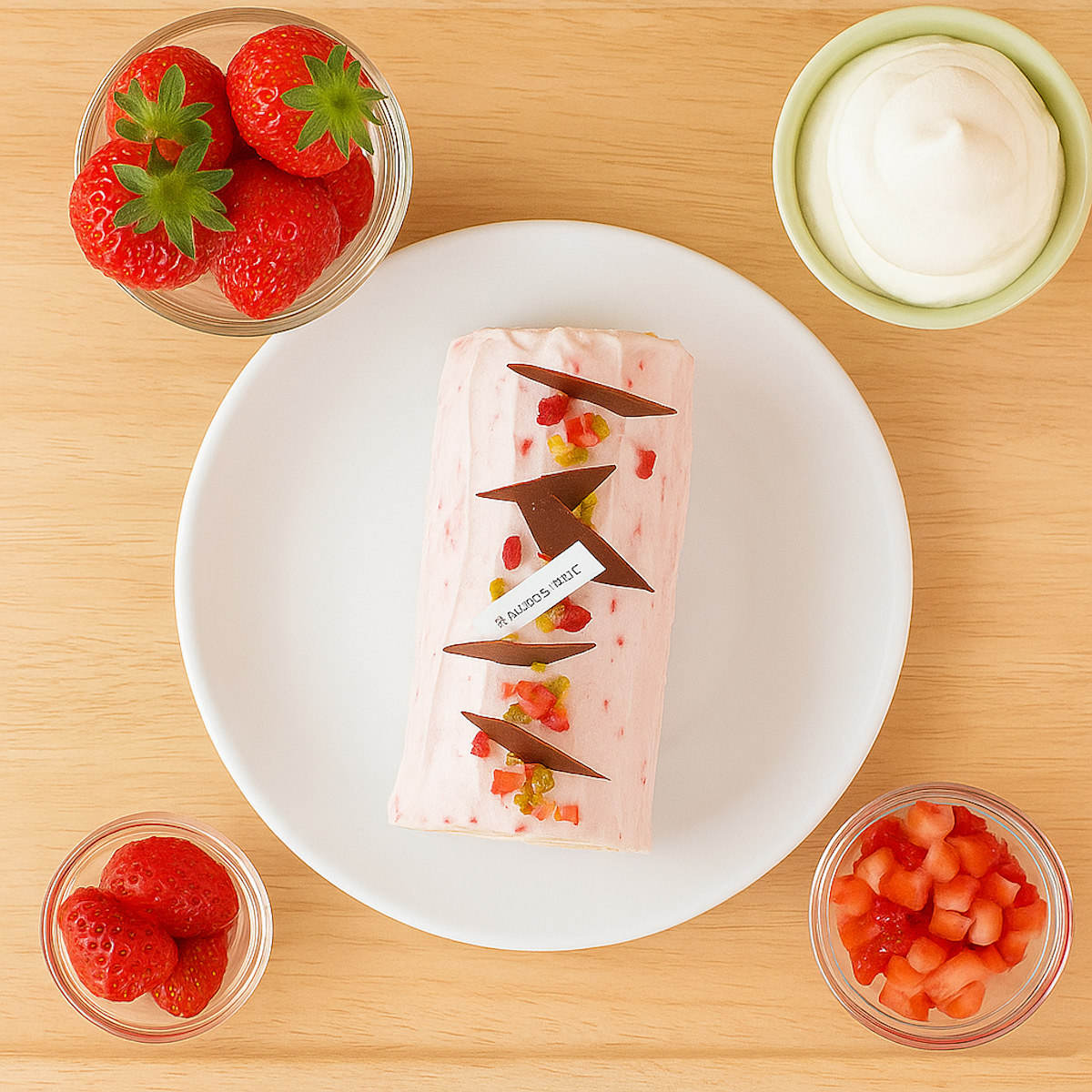 ●原材料:<ケーキ>乳等を主要原料とする食品(国内製造)、ジェノワーズ(液全卵、小麦粉、砂糖、植物油)、フラワーペースト(砂糖、加糖卵黄、脱脂粉乳、牛乳、脱脂濃縮乳、その他)、クリーム、砂糖、フリーズピューレ、ゼラチン、いちご濃縮果汁、フリーズドライフランボワーズ、バニラシードペースト、粉糖/トレハロース、乳化剤、香料、メタリン酸Na、増粘剤(加工デンプン、キサンタンガム)、安定剤(増粘多糖類)、酒精、クロレラエキス、調味料(アミノ酸)、ポリリン酸Na、着色料(野菜色素、紅花黄)、保存料(ソルビン酸K)、ビタミンC、酸味料、シリコーン、(一部に小麦・卵・乳成分・大豆・ゼラチンを含む)