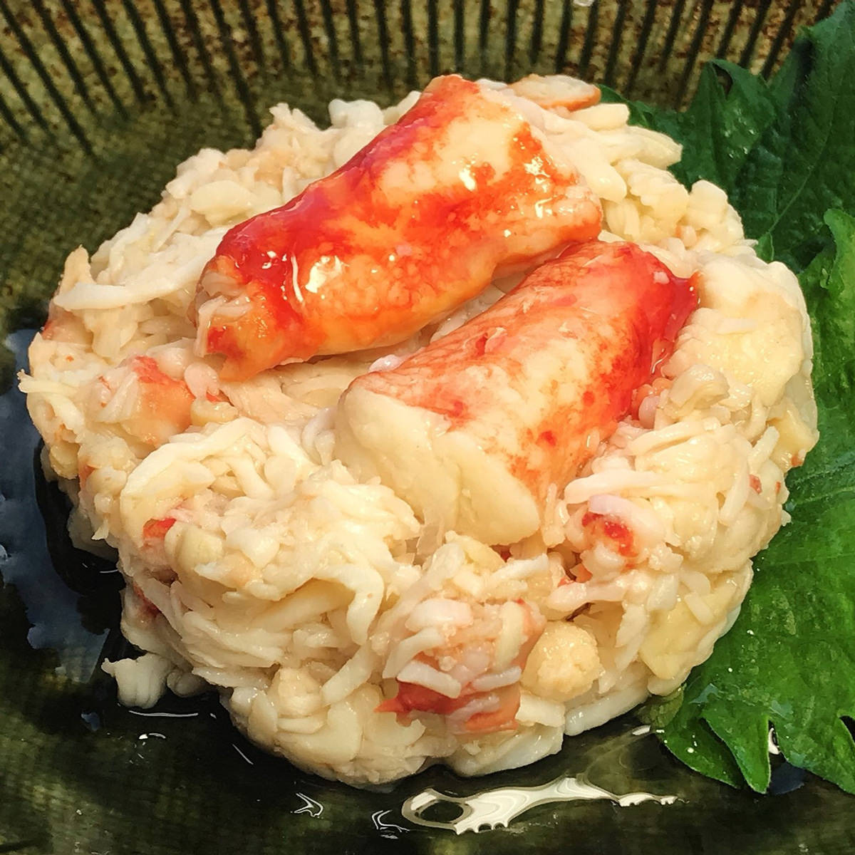 ●原材料:たらばかに、食塩、砂糖/調味料(アミノ酸等)、リン酸塩(Na)、増粘多糖類、酸化防止剤(亜硫酸塩)、(一部にかにを含む)