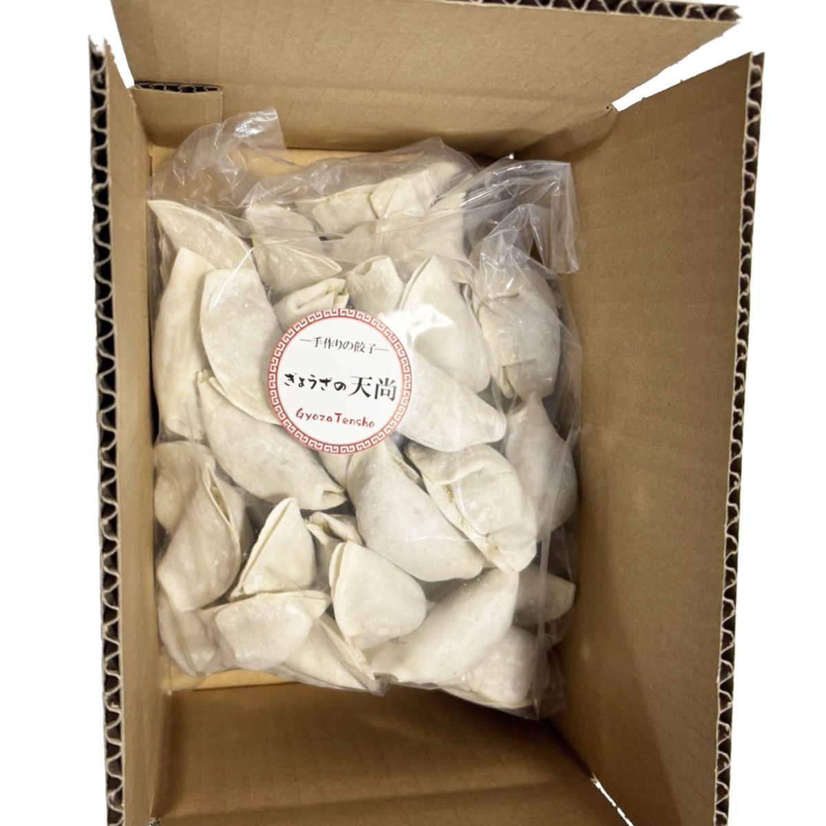 厳選した国内食材を使用した「大阪ぎょうざの天尚 国産素材 手作りの餃子」です。国産の食材にこだわり、ぎょうざの天尚のいつもの味をご家庭でご提供できるように製造・販売しております。原料に国産の鶏肉、キャベツ、にらなどを使用。国産の鶏肉と国産野菜本来の甘みをお楽しみいただけます。ジューシーだけど胸焼けしない、野菜たっぷりのあっさりした餃子です。にんにく控え目ですが、食べ応えがあります。食卓のおかず、お酒のおとも、おつまみなどとして、おいしい餃子をお取り寄せお楽しみください。冷凍の生餃子ですので、凍ったままフライパンで焼いてからお召し上がりください。フライパン調理の際に、油を多めに引くことがおいしく焼くコツです。{美味しい焼き方}熱したフライパンに油を引き、餃子を並べる。軽く焼き色がついたら水を入れて蓋をする。水気がなくなったら油を少量かける。薄きつね色になったら蓋をしたまま火を消し、1分後、弱火で再度焼く。