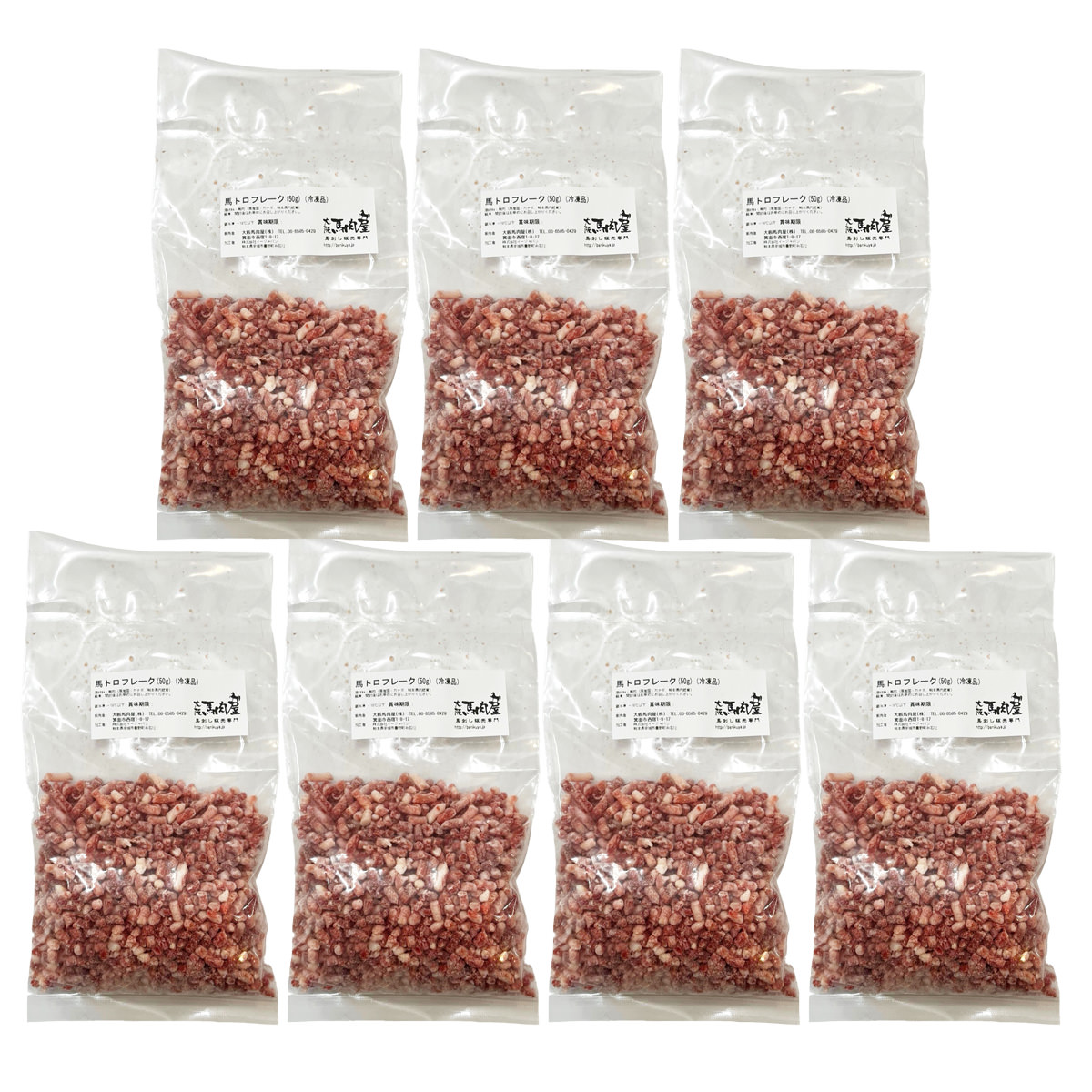 「大阪馬肉屋 馬トロフレーク」は、国内肥育の新鮮な馬肉をフレーク状にして冷凍した商品です。凍ったまま熱々のご飯にかけるだけの簡単調理で、馬刺しの甘い脂がとろりと溶けて贅沢な「馬とろ丼」が完成します。味付けは馬刺しのタレ、あるいは醤油のどちらでも美味しくお召し上がりいただけます。薬味は刻みねぎ、刻み海苔がおすすめです。1パック(50g)でお茶碗2~3杯分の馬とろ丼を作れます。白ご飯のお供として、美味しい馬トロフレークをお取り寄せでお楽しみください。{おいしい食べ方}1.炊きたてのご飯を用意する2.馬トロフレーク(解凍不要)を適量かける3.お好みの薬味(刻みねぎ、刻み海苔など)とタレ(醤油)をかける