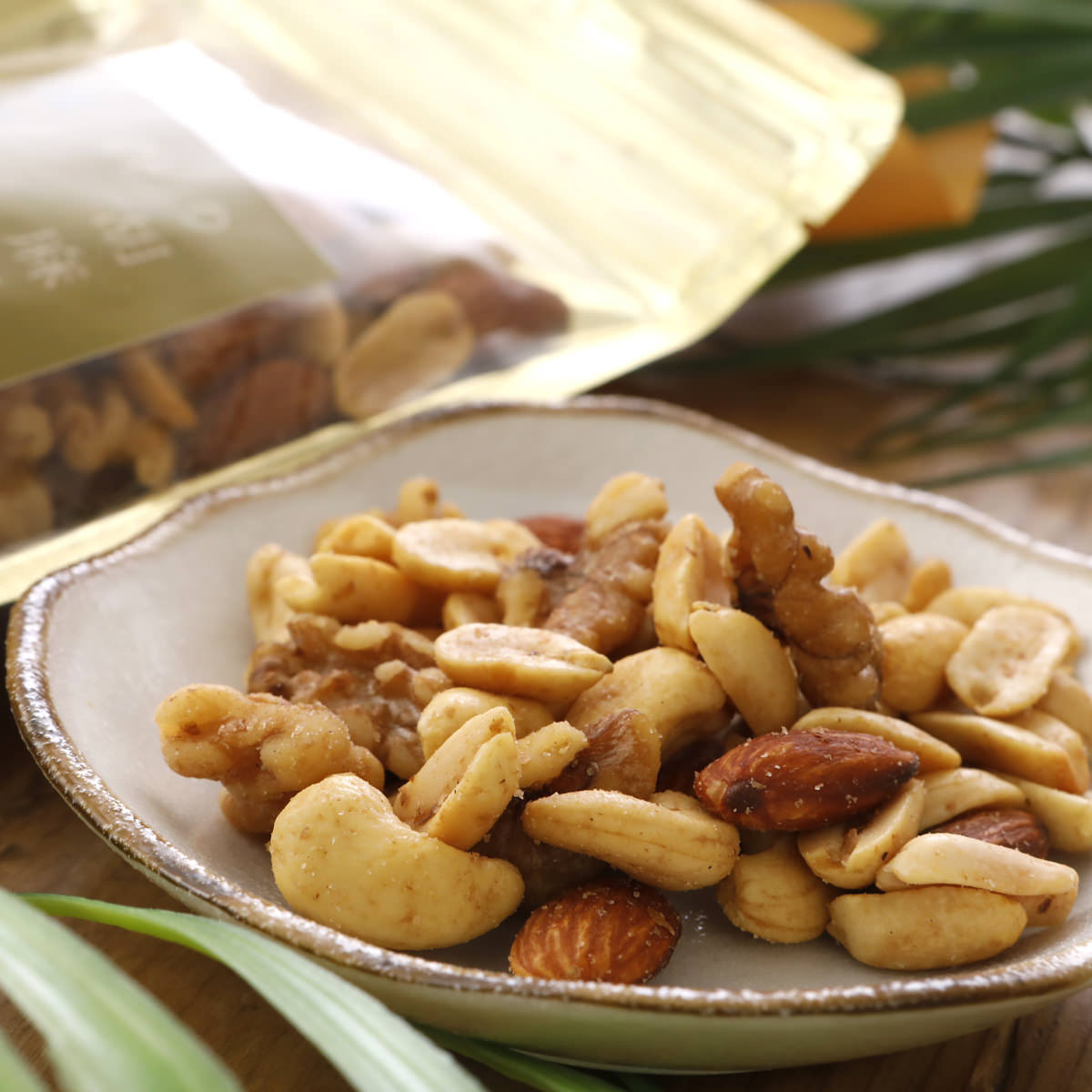 ●原材料:<香り胡麻油燻製>ピーナッツ(アメリカ)、アーモンド(アメリカ)、くるみ(アメリカ)、カシューナッツ(ベトナム)、胡麻油(喜界島産)、塩(喜界島産)