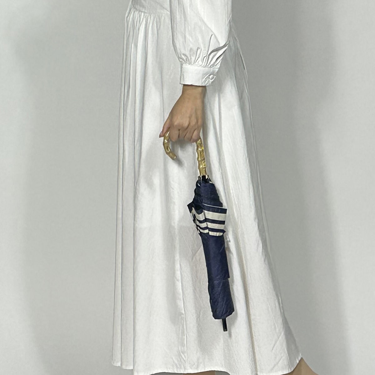 「ショートワイド傘 晴雨兼用 スギタ マリンボーダー」は、傘の老舗メーカー”スギタ(SUGITA)”が開発したコンパクトな傘です。長傘は持ち運びに邪魔、折りたたみ傘は畳むのが面倒な上、差したときに小さくて濡れる、といったお悩み、不便さを解消しました。畳むとトートバッグに入るコンパクトなサイズ。広げると直径約97cm、UVカット99.9%、遮光99.99%、遮熱約20℃、耐水圧10000mmと機能的で、雨からも日差しからも体をガードできます。カラーはオフホワイト、ピンク、ベージュ、ネイビー、ブラックから選べます。環境省の海洋プラスチックごみ問題の解決に取り組むキャンペーン(2018年~)「Plastics Smart(プラスチックスマート)」の事例として紹介されています。ANA「WonderFLY(ワンダーフライ)」【旅の常識を覆すモノ】クリエイティブアワードを受賞(2016年)。