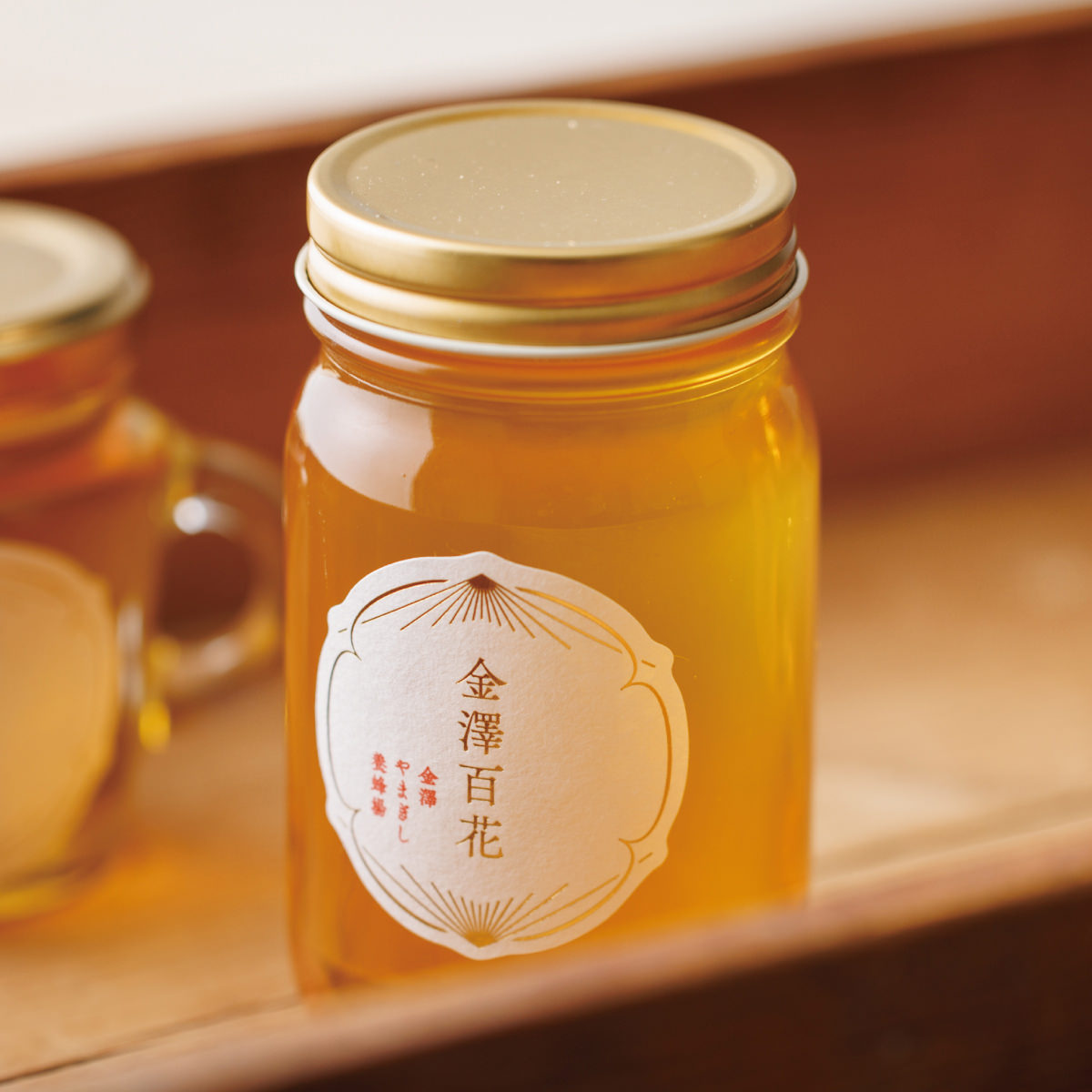 石川県金沢市の金澤やまぎし養蜂場がお届けする希少な金澤はちみつ「金澤百花」です。花の期間が長く、種類も豊富な金沢の夏は、さまざまな花の蜜が集まります。多彩な風味と香りが織りなす個性的な味わい、力強く濃厚でほろ苦さを含んだ甘みが特徴の夏から晩夏の百花(ひゃっか)はちみつです。パンに塗ったり、紅茶に入れたり、スコーンやパンケーキにかけたりするほか、ヨーグルトやフルーツグラノーラなどと一緒にお召し上がりください。クセの強い塩気があるチーズ、全粒粉やナッツ入りのハード系パンにも合います。「金澤はちみつ」は、金澤やまぎし養蜂場で生産する特別なはちみつです。金沢は、冬が長いため花の開花時期が遅く、降雨量が多い地域。一方で開花期間は長く、採蜜期間も長くなるので、珍しい蜜源の組み合わせが生まれ、希少なはちみつを採取できます。金沢の風土が育んだ豊かな味わいをお取り寄せでお楽しみください。※1歳未満の乳児には与えないでください。