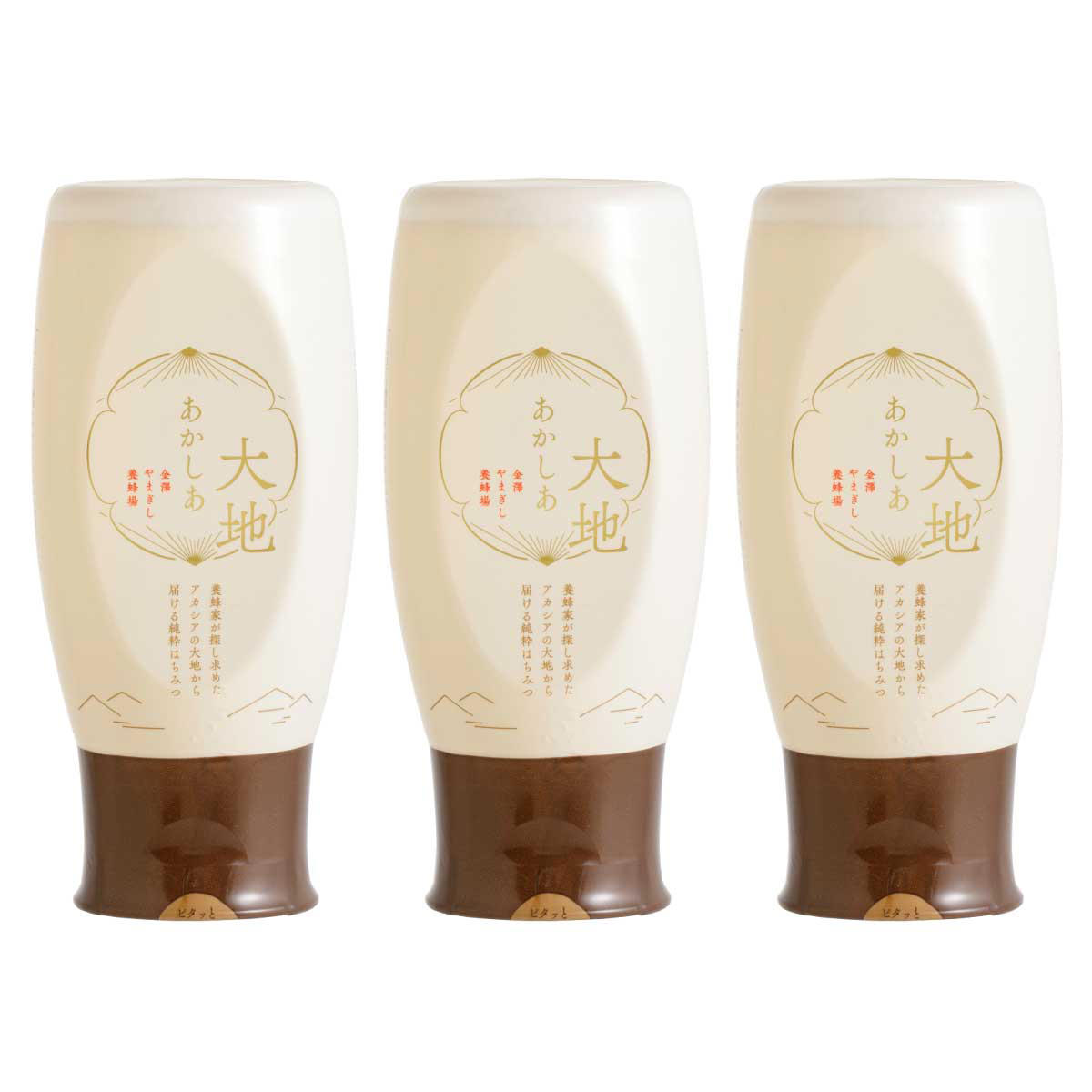 石川県金沢市の金澤やまぎし養蜂場がお届けする非加熱・生アカシアはちみつ「あかしあ大地」です。金澤やまぎし養蜂場の「あかしあ大地」はクセのない透明感のある甘みとフレッシュな風味が特徴です。トーストに塗ったり、紅茶に入れたり、料理の隠し味にもおすすめです。砂糖やみりん代わりに使うと、お料理にコクや照りをプラスできます。あっさりとクセのない味なので、毎日お使いいただけます。黄金色のひとさじが毎日の食卓をより豊かにしてくれます。はちみつがピタッときれて液だれしにくい便利な卓上ボトル入りです。「あかしあ大地」の原産地は、見渡す限りアカシア林が続き、聞こえるのはミツバチの羽音だけという自然豊かな黄河流域にあります。現地で厳密なチェックを行い、品質基準を満たしたはちみつだけを使用。香りや風味を損なわないよう、採れたての美味しさを保つために丁寧に詰めています。※1歳未満の乳児には与えないでください。