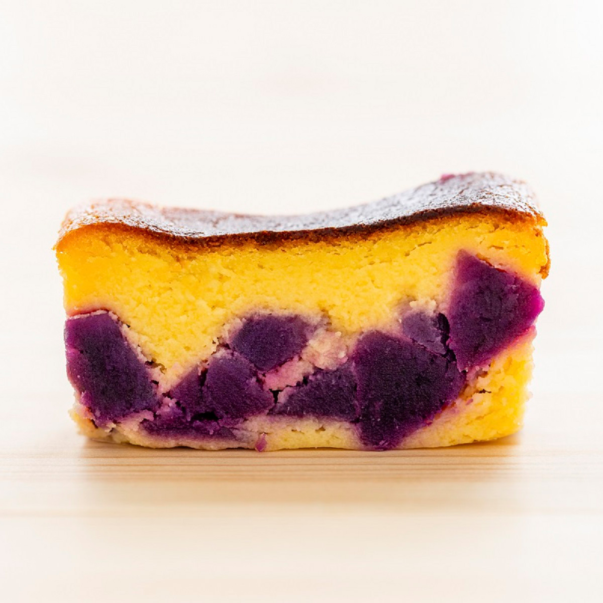 「mosukii さつまいもケーキ チーズ」は、『いも、すき。』をコンセプトに九州産のさつま芋を贅沢に50%以上使った小麦粉不使用のさつまいもケーキ(チーズ)です。お芋本来のおいしさを味わってほしいという想いから、お芋独自の味わいを大切にしながらチーズをたっぷりと練りこみました。しっとりなめらかな生地とゴロゴロとしたキューブの2種類の食感が味わえるお芋ケーキです。ブランド名「mosukii(もすきい)」は「いも、すき」を10回いうと「もすきい」になることから生まれた、おいもが大好きなブランドです。パッケージの下の箱を広げ、袋から出せばそのまま簡単に切り分けができるように、九州の木材を使った小さなカッティングボードを入れています。大切な人とのおうちカフェや、ギフトや手土産にもぴったりなお芋たっぷりの特別なお取り寄せスイーツ。芋好きのあなたにぜひ食べてほしい贅沢なケーキをぜひご賞味ください。※冷凍でお届けしますので、凍った状態から冷蔵庫で7~8時間かけてゆっくりと解凍してください。解凍後は要冷蔵で3日以内にお召し上がりください。