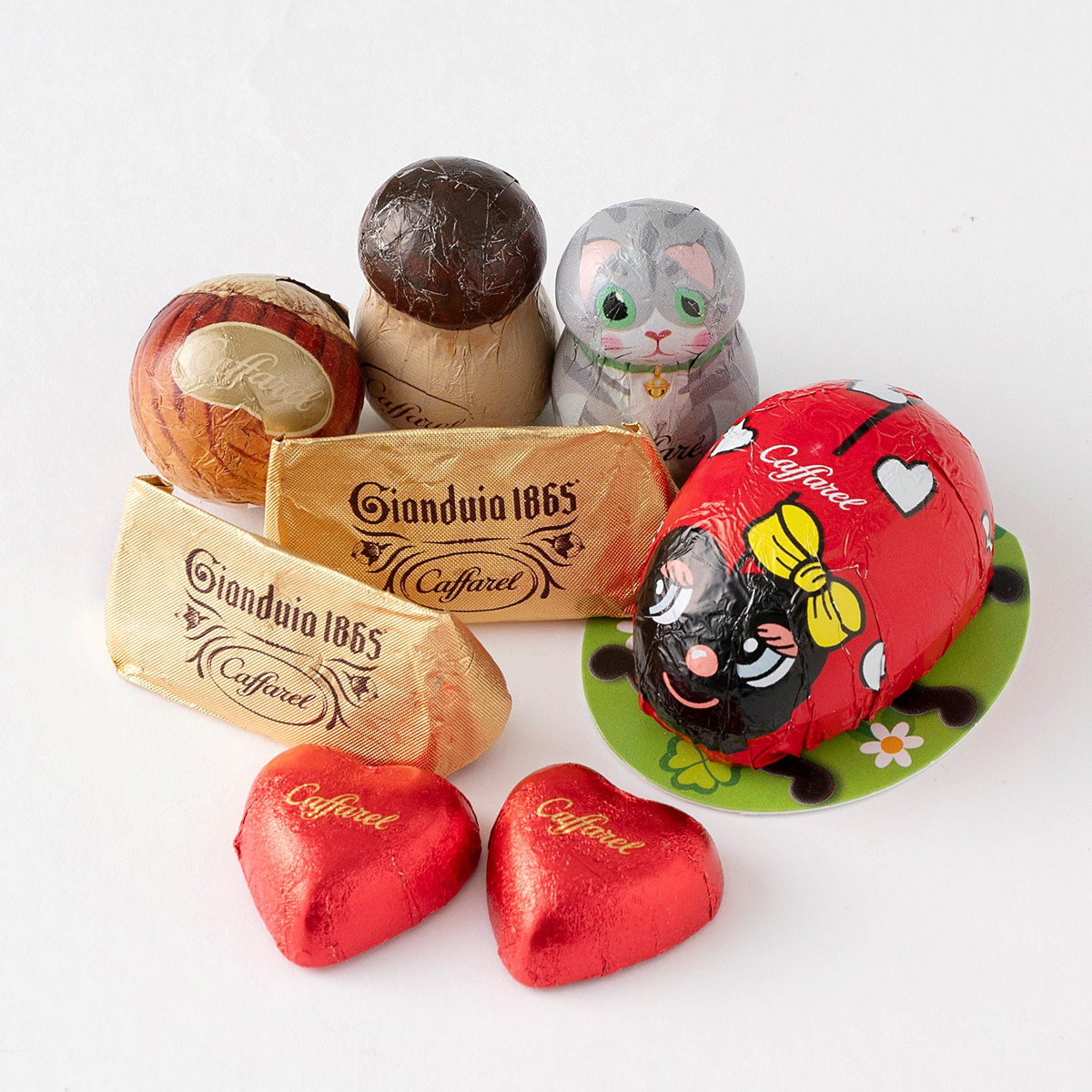●数量・内容:64g(ジャンドゥーヤ×2、きのこ×1、てんとう虫×1、キャット×1、ヘーゼルナッツ×1、ミニハート×2)
