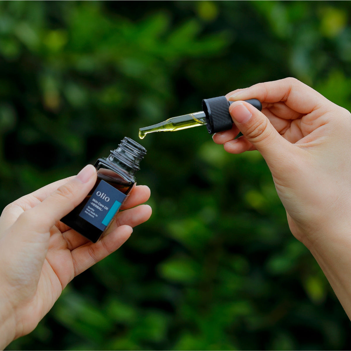 「olio スキンケアオイル ハーバル」は、ハーバル調のアロマがやさしく香る植物由来成分100%スキンケアオイルです。静岡県産の茶ノ実油(TEA SEED OIL)とホホバ種子油を贅沢に配合。ボディ、フェイス、ヘアケアと全身にお使いいただけます。人の皮脂に近い組成で肌なじみが良く、べたつかずに角質層まで浸透。精油の力で保湿し、すこやかな肌へ導く多機能美容オイルです。合成香料は一切使用せず、ティートリー、クラリセージ、ユーカリなどの心地よいウッディ調の天然精油をブレンド。ブースターオイルとして化粧水にプラスすると、浸透をサポートし、しっとり肌へ導きます。タオルドライ後の髪になじませると、ドライヤーの熱や摩擦から保護し、しっとりまとまりのある髪に。シャンプー前の頭皮マッサージに使うと、皮脂汚れを浮かせながら地肌を保湿し、乾燥を防いですこやかな頭皮環境へと導きます。{使用方法}適量を手にとり、乾燥の気になる部分に優しくなじませます。手のひらで温めてからマッサージするように塗布するとなじみやすいです。化粧水前のブースターオイルとしての使用もおすすめです。【使用期限】未開封3年間