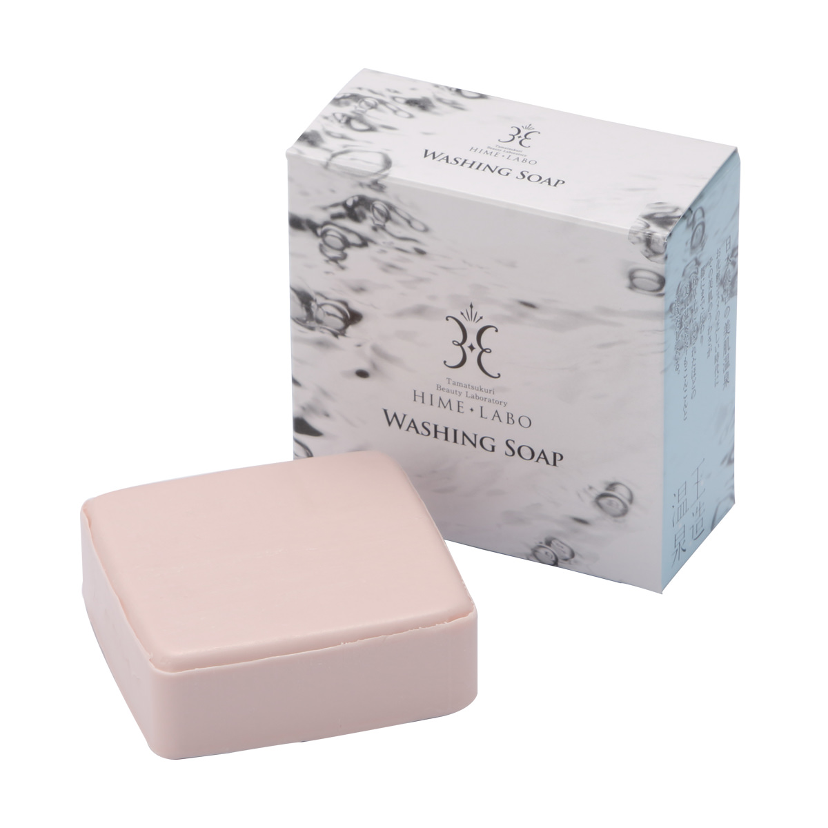 「玉造温泉美肌研究所 姫ラボ 洗顔石けん 泡立てネット付き」は、島根県松江市の古湯・玉造温泉(たまつくりおんせん)の温泉水を配合した洗顔石けんです。姫ラボ石けんは姫ラボブランドの中でも人気が高く、きめ細かい泡立ちと洗いあがりのつっぱりにくさが特徴です。きめの細かい濃密泡が汚れをしっかり落としながらも潤いをもたらし、ハリや弾力のある肌に導きます。オリーブ果実油やハチミツなども配合し、保湿力に優れているのが魅力です。姫ラボは「美肌の湯 島根・玉造温泉」の温泉水を使用した基礎コスメブランドです。{使用方法}水またはぬるま湯でよく泡立ててからお使いください。その後十分に洗い流してください。目に入ったときは、すぐに水で洗い流してください。お肌に合わないときは使用を中止してください。【使用期限】未開封2年(開封後180日)