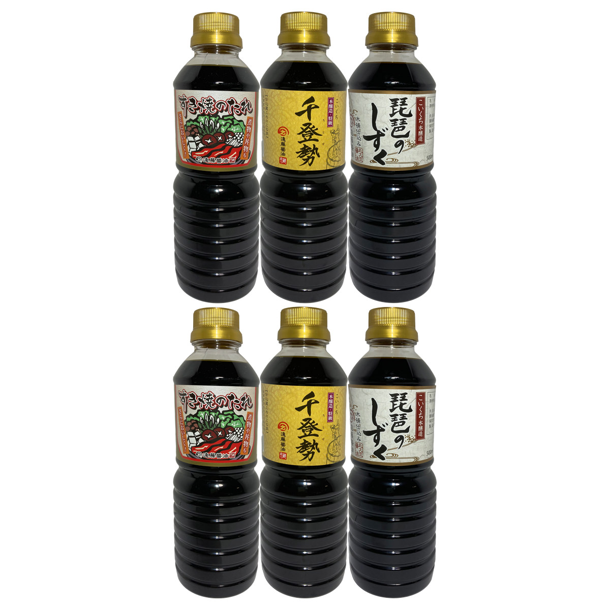 ●数量・内容:琵琶のしずく、千登勢濃口、すき焼のたれ 各500ml×2