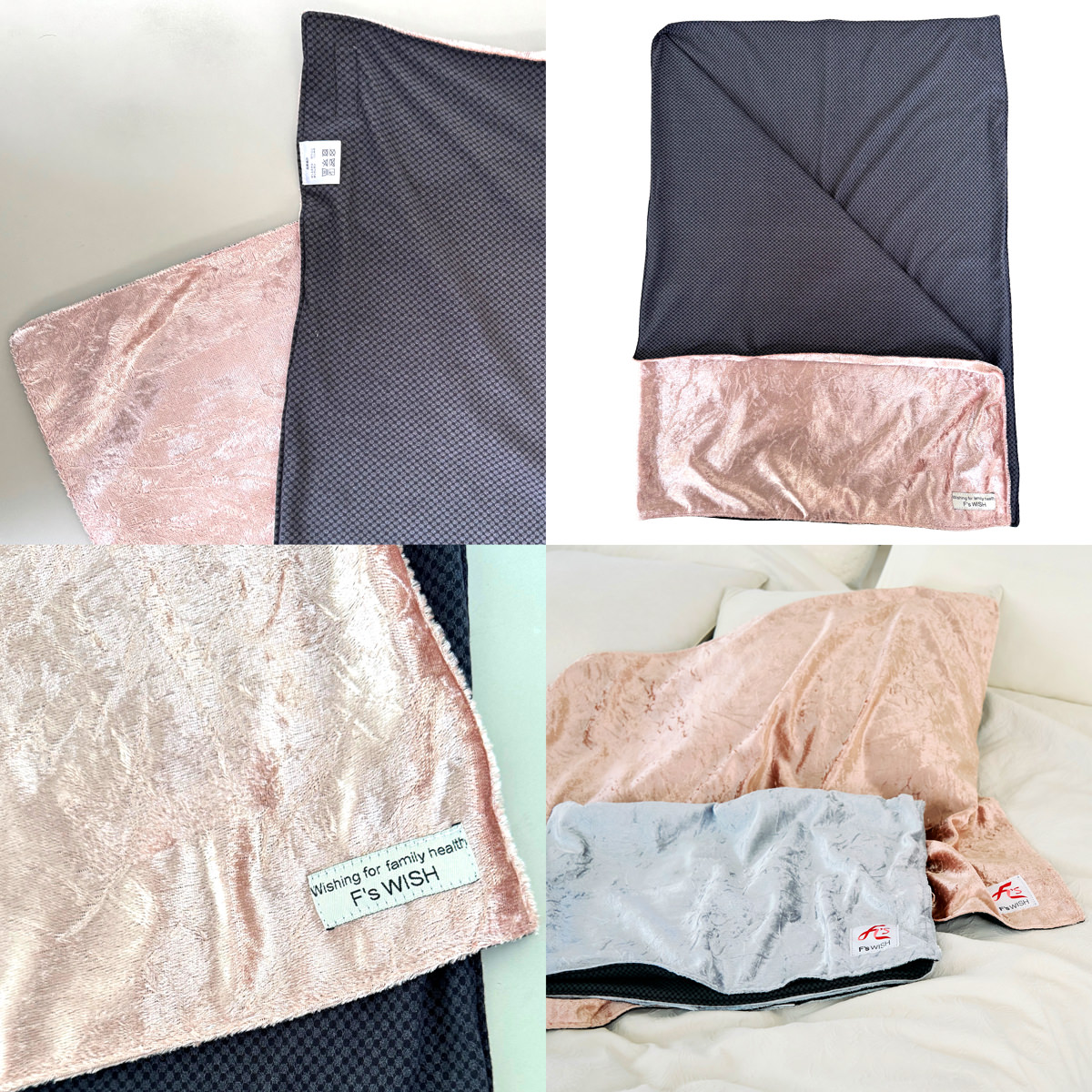 「エフズウィッシュ テラブランケット Sサイズ」は、肌寒い時にちょうどいいひざ掛けです。特別な素材の使用により、体を包み込むことで、じんわり心地よくあたたまります。季節の変わり目、肌寒いと感じる瞬間、エアコンによる冷え対策などにおすすめです。ご自宅のリビングでソファーに座っているとき、オフィス、車の中など、さまざまなシーンで気軽にご利用いただけます。持ち運びやすい軽量設計なので、外出時や旅行先でも重宝します。必要な時にさっと取り出して使える便利さが魅力です。どんな場所でも使いやすく、見た目もおしゃれなデザインです。手洗いまたは洗濯機の弱水流で丸洗いが可能。お手入れも簡単です。カラーはピンクゴールド、シルバーグレー、グリーンの3色からお選びいただけます。{使い方}肌寒いと感じときに、軽く巻いてください。 リビングやオフィス、車の中、外出時、旅行先など、さまざまな場所でご利用いただけます。