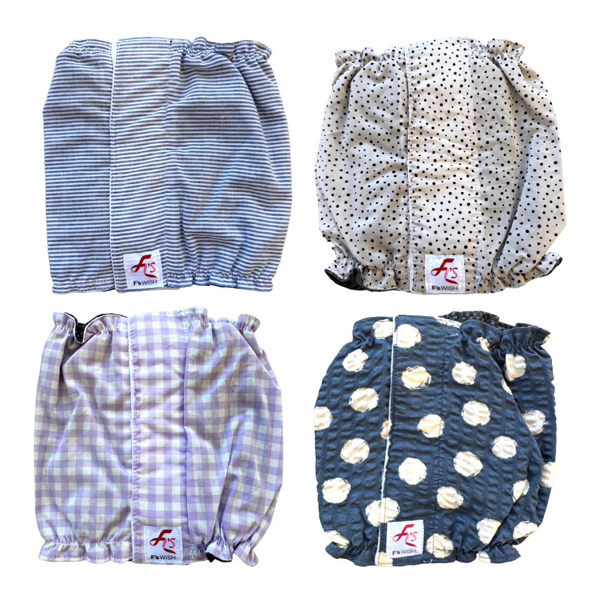 「エフズウィッシュ 薄手 テラペットはらまき Sサイズ」は、寒い季節にぴったりな、ゴム2本タイプのペット用はらまきです。音の静かなサイレントテープを使用し、大切なペットのお腹を温かく包み込みます。誰でも簡単に装着できるシンプルなデザインです。装着部分にはサイレント面テープを採用。柔らかい素材のため、ペットがストレスなく快適に着用できます。お散歩や日常の中で、可愛いペットをスタイリッシュに演出するのにも一役買います。愛犬・愛猫が心地よい温もりに包まれることで、毎日楽しく過ごせるでしょう。夏のエアコン対策や、春秋のちょっと肌寒い時期などにもぴったりです。ストライプ、ドット、パープルチェック、ネイビードットの4種類から、好みの柄を選べます。