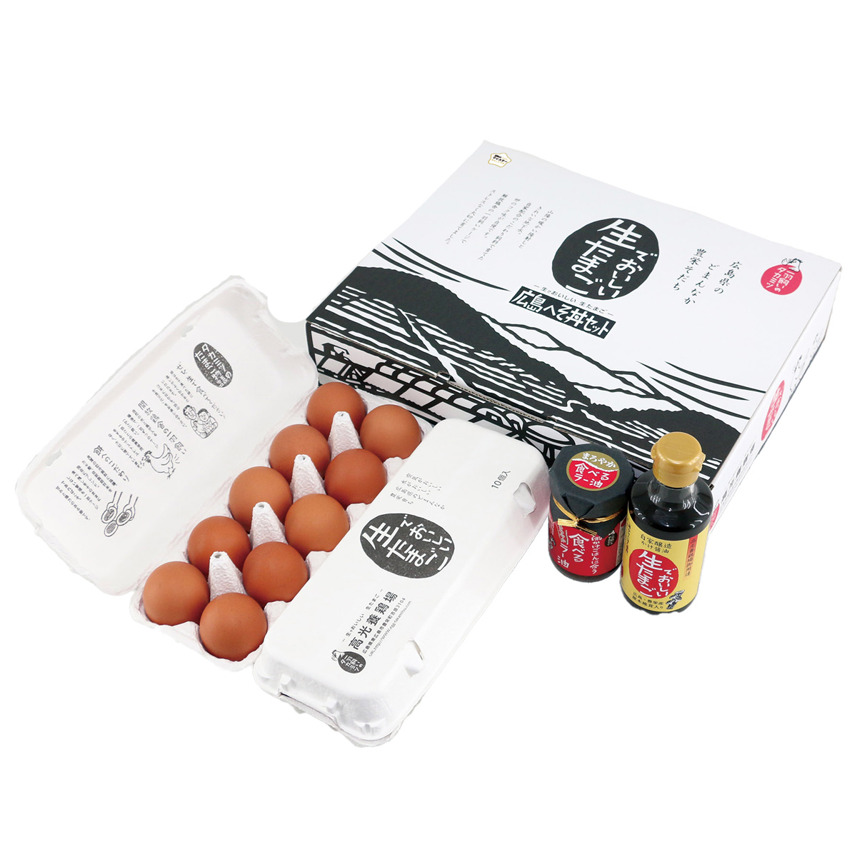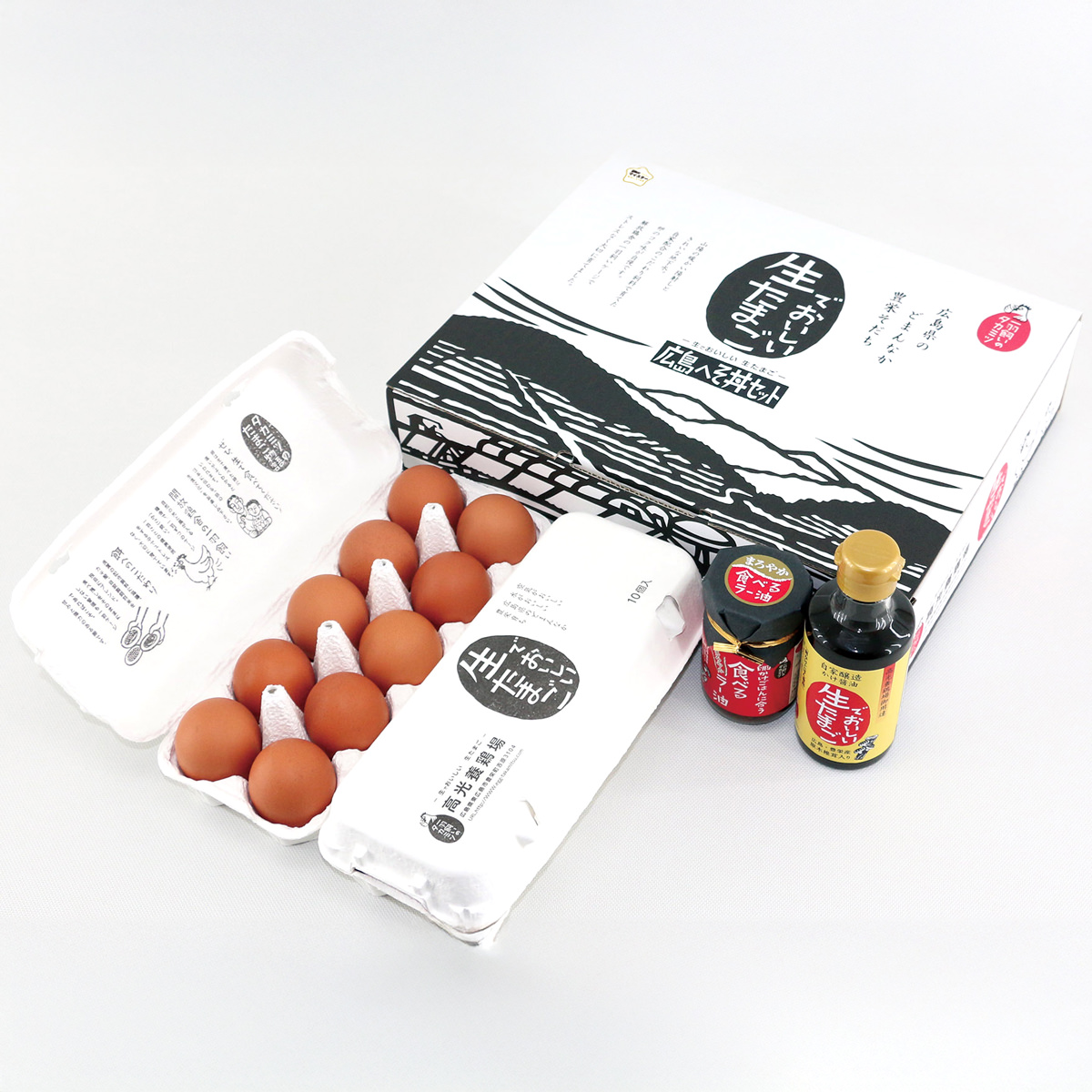 「高光養鶏場 広島へそ丼セット」は、広島県のど真ん中、”へその町”として親しまれる東広島市豊栄町のご当地丼を手軽に食べられるセットです。「へそ」は母と子のいのちのつながり、栄養のある「卵かけごはん」はへその緒を通じて母からもらった栄養に通じるメニューをイメージします。へその町独自の卵かけごはんという素朴な一品ですが、親子のつながりや、いのちの育みへの感謝の思いを込めた商品でもあります。高光養鶏場の卵は、弾力のある粘り強い白身、甘さを感じるコクのある濃厚な黄身が自慢です。昔ながらの希少な「開放鶏舎で一羽飼い」を守り、手作業で餌やりや集卵を行いながら、一羽毎の健康状態に気を配り大切に育てています。通常2羽ずつ入れるかごに、当農場では半分の1羽ずつ入れて飼っており、ケンカなどのストレスが無く、食べたいだけの餌を十分に食べられるため、コク味の深い質の高い卵が産まれます。{食べ方}へそに見立てた卵をごはんの真ん中にのせ、専用の食べるラー油を添えて、お好みで醤油をかけます。青ねぎ、そぼろ肉、しらす、ナムルなどの具材をトッピングして、ご当地の味をアレンジするのもおすすめ。