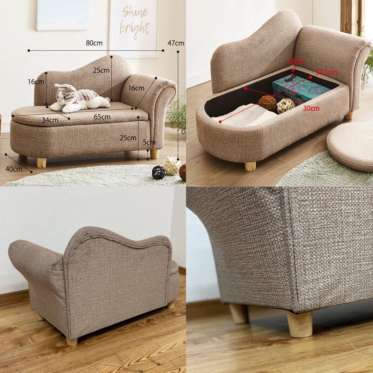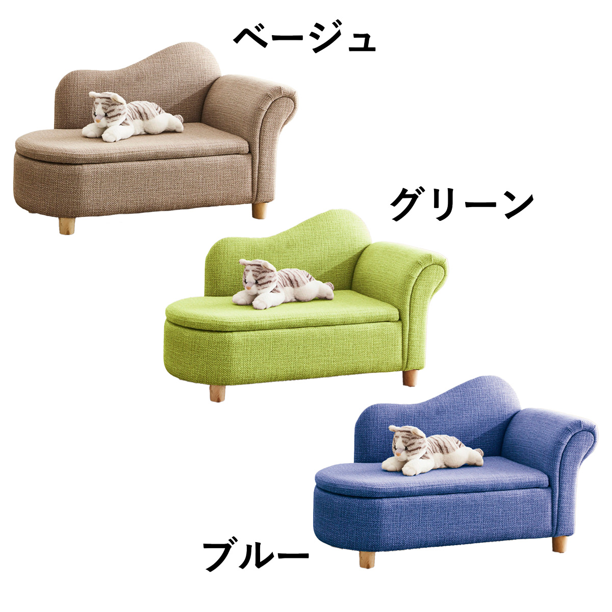 引っ掻きに強い特殊繊維を使用した「大川リビング ペットソファー クリス」です。愛犬・愛猫にも優しい素材を使用しています。座面は取り外し式になっており、開けると収納庫になっています。おもちゃやペットシートなどの小物の収納に便利です。脚も取り外しが可能で、ロータイプとしても使用できます。カラーはベージュ、グリーン、ブルーの3色から選べます。※工具不要の組み立て式です。脚のみお客様にて取り付けとなります。