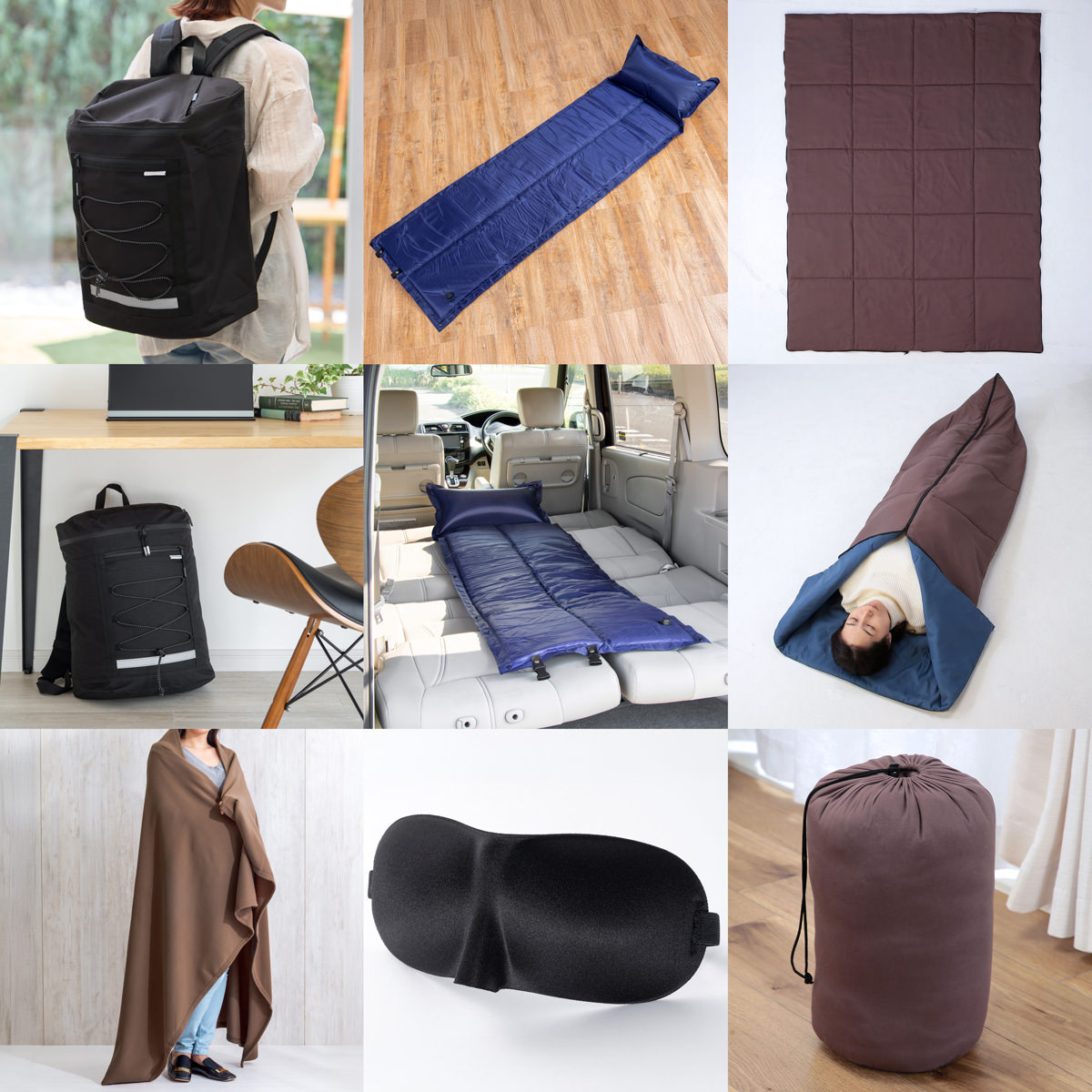 ●数量・内容:リュックサック、備長炭わた入り寝袋、マルチエアーマット、備蓄用難燃毛布、3Dアイマスク