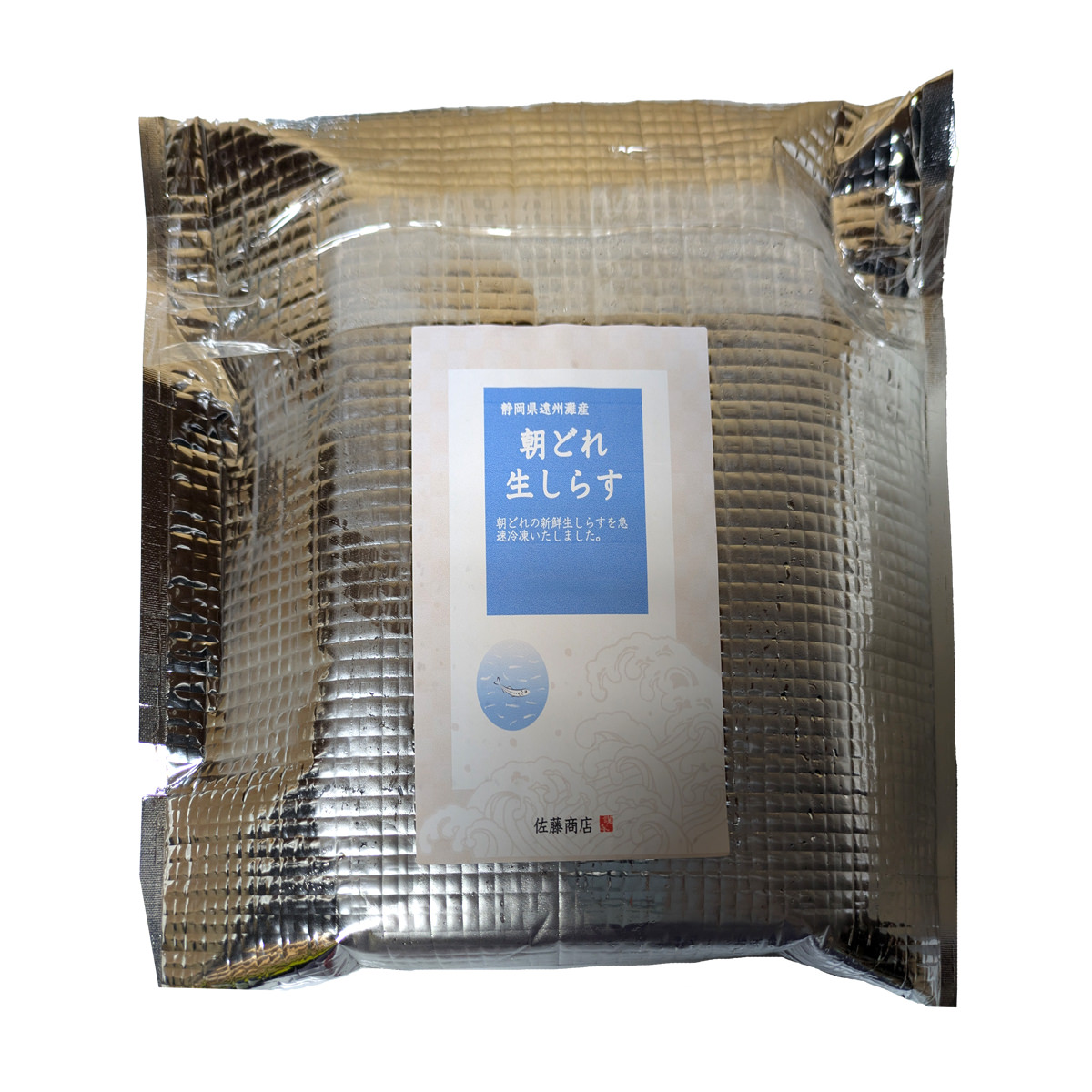 その日水揚げされた鮮度の良い原料を使用した「RS 佐藤商店 静岡県 遠州灘産 朝どれ 生しらす」です。港から5分ほどの加工場にて、新鮮なしらすを急速冷凍しています。塩水処理を行い、その後手作業にて、異物(エビ、イカ、プランクトン、海洋ゴミ)を取り除きます。パックを真空後、-30度にて急速冷凍します。袋のまま流水解凍するだけでお召し上がりいただけますので、丼物の具、お刺身、ご飯のお供、お酒のおつまみなどとしてご利用ください。第15回チーム・シェフ コンクール(2025)審査員特別賞およびチーム・シェフ賞(山田チカラ賞)、全国商工会連合会主催「buyer’s room 2025(9月の部)」にて審査員特別賞を受賞しました。{食べ方}袋のまま流水解凍で5分ほど解凍してください。しらすの色が白から本来の色に戻ったらお召し上がりください。洗う手間もなく、そのままお好きな食べ方でお楽しみいただけます。