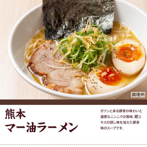[スープ] ポークエキス(国内製造)、豚脂、食塩、砂糖、しょうゆ、たん白加水分解物、香辛料、かつおエキス、香味食用油/調味料(アミノ酸等)、加工でんぷん、酒精、カラメル色素、増粘剤(グァーガム)、(一部に小麦・大豆・豚肉を含む)
