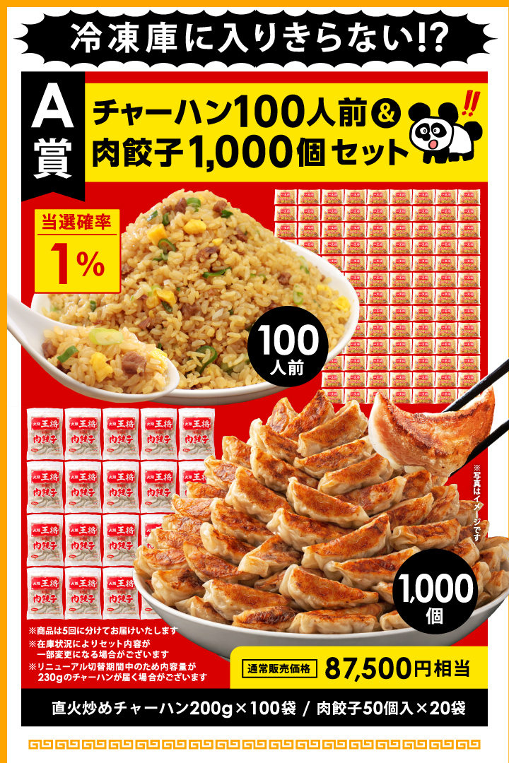●各省(A賞~E賞)については本企画「大阪王将 MEGA中華ガチャ」を実施している大阪王将公式通販の対象商品ご注文のお客様から抽選いたします。