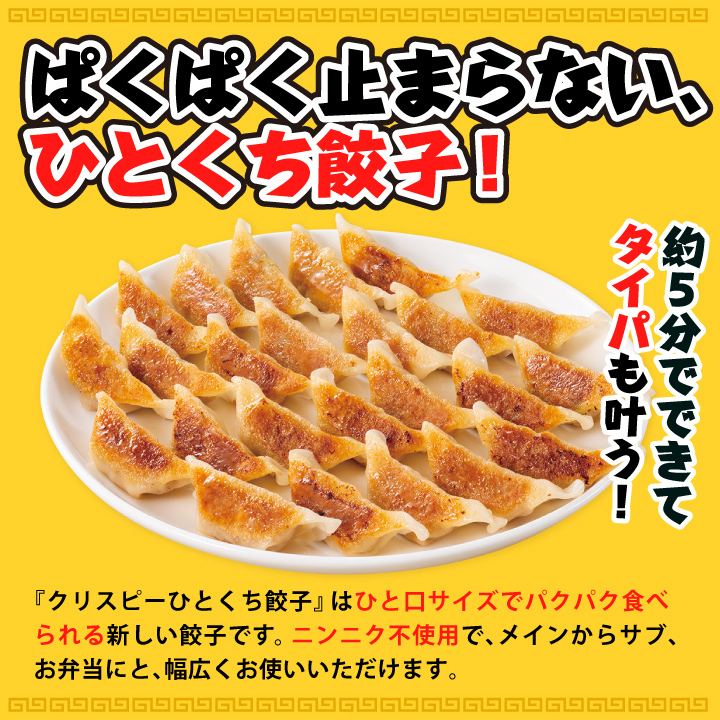 具材は国産!ぱくぱく止まらない!クリスピーでやみつきの味わいの小粒ぎょうざです。
