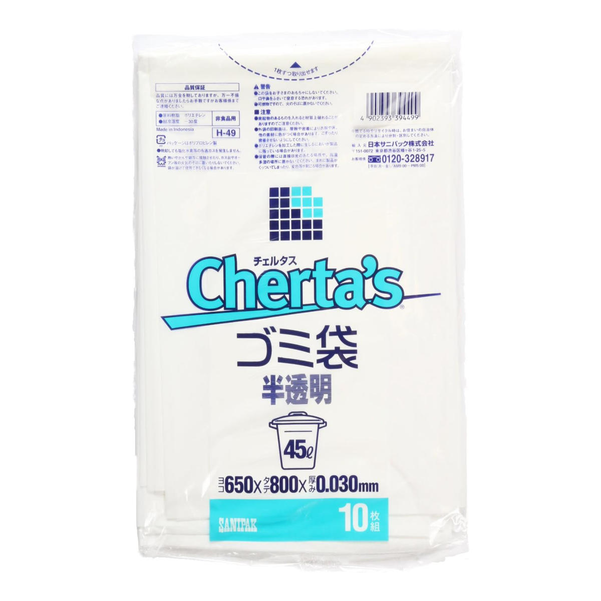 ●しなやかな素材で中身が見えにくい白半透明タイプの45Lゴミ袋です。