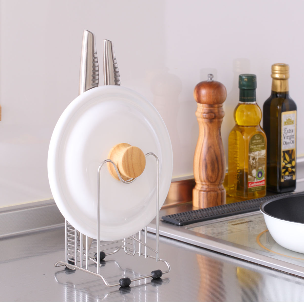 まな板立てには、置き場所に困るフライパンのフタの一時置きや、乾燥にもお使いいただけます。