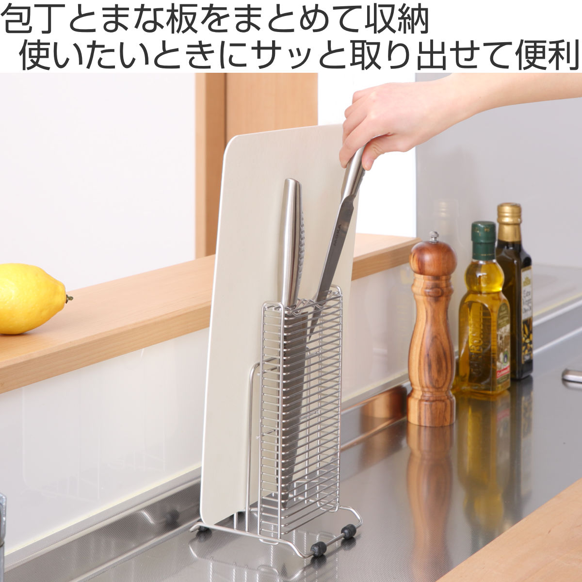 包丁とまな板をまとめて収納できるスタンドです。よく使う包丁やまな板を手の届く場所にすっきり収納でき、使いたいときにサッと取り出せて調理がスムーズに行えます。