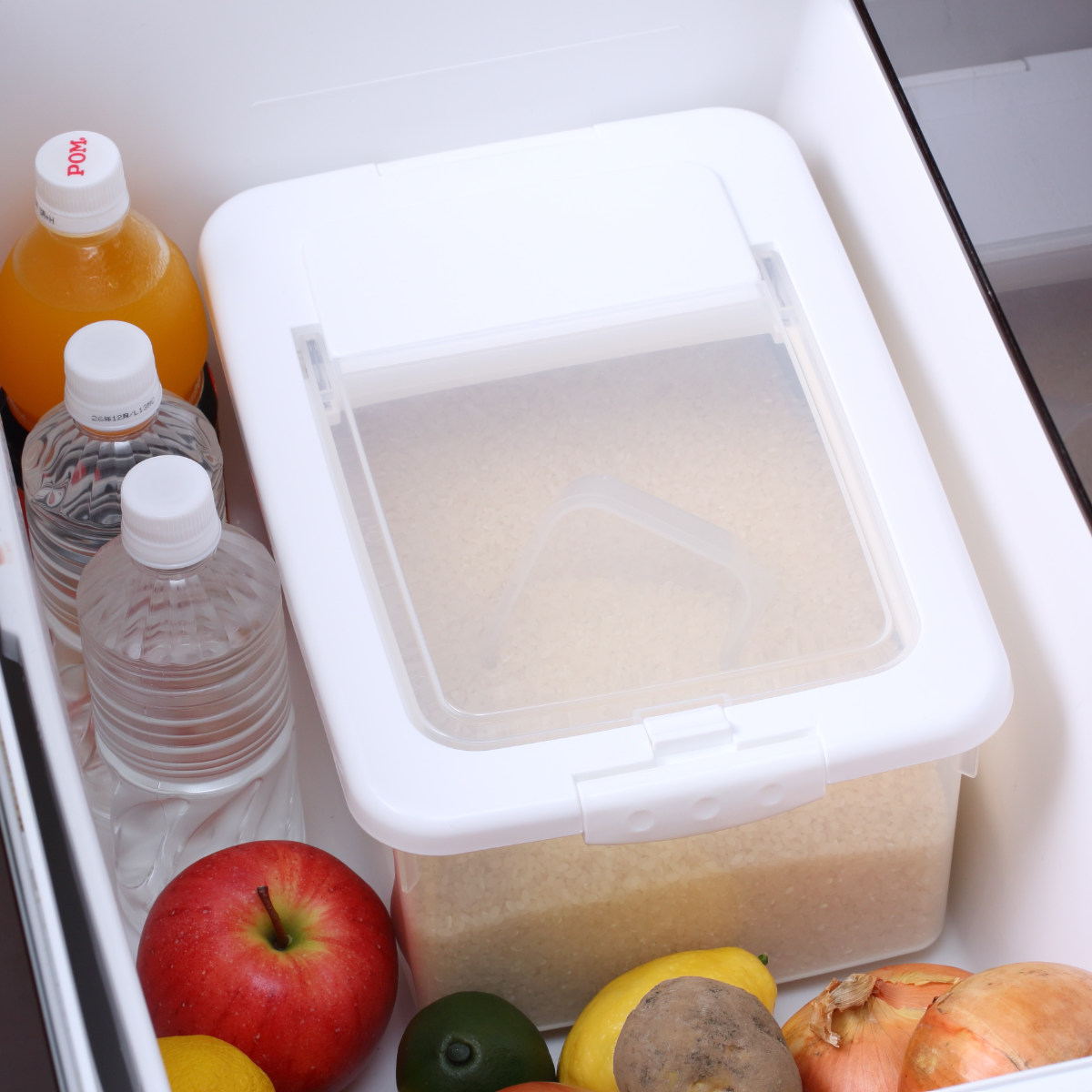 ケースは透明なのでお米の残量が一目で分かります。中の状態が見えることで、買い足しのタイミングがわかりやすく、買い忘れ防止にも繋がります。