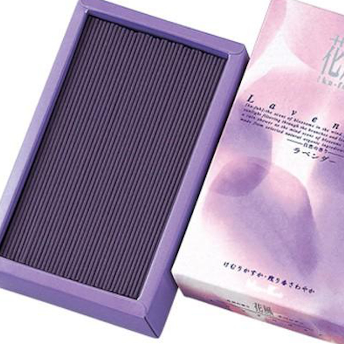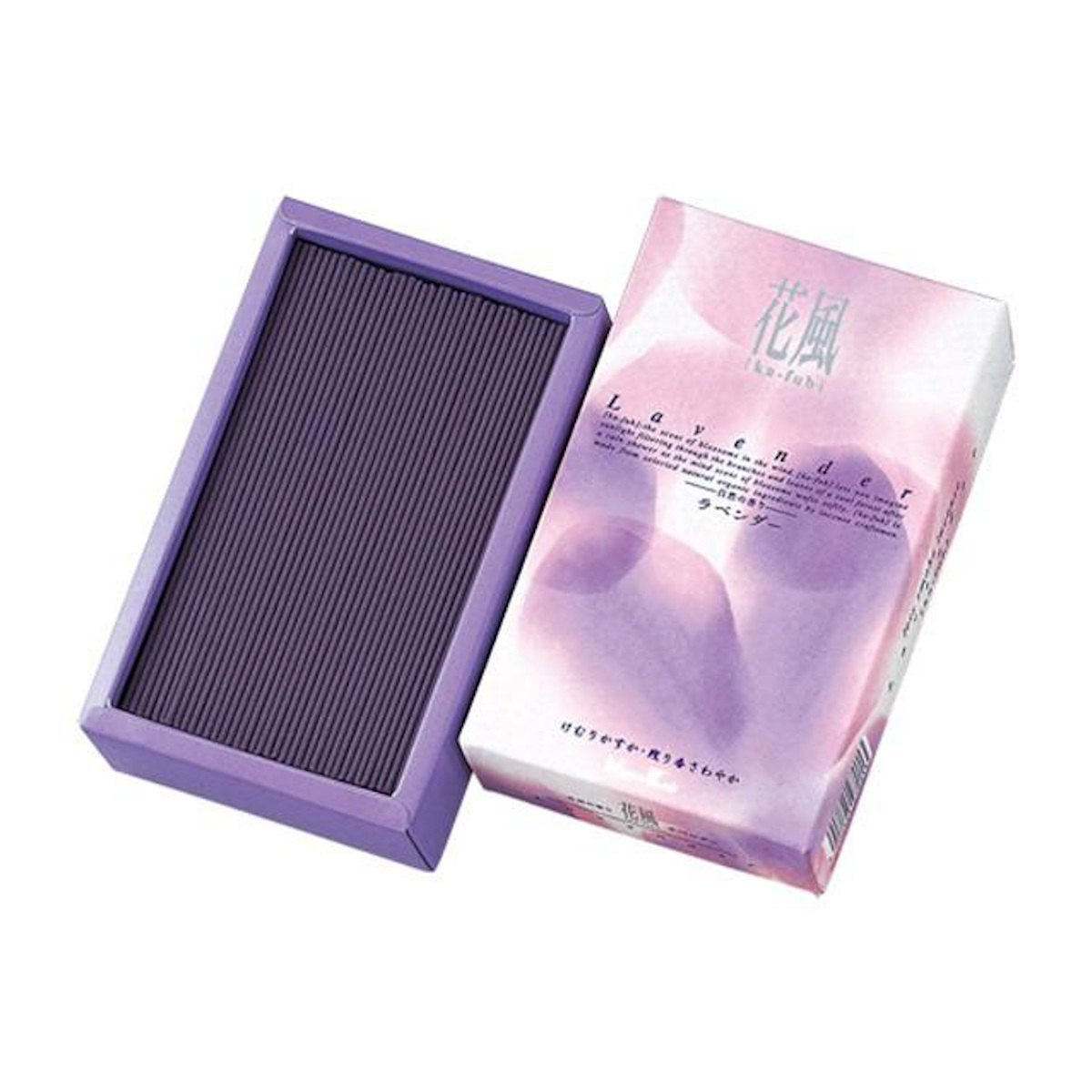 自然の中の生命の輝きを感じさせ、心澄みわたるお線香「花風」。夏空のもとアルプスの山麓一面に広がる、最も芳香がすばらしいといわれる開花直前のラベンダーそのものの香りです。