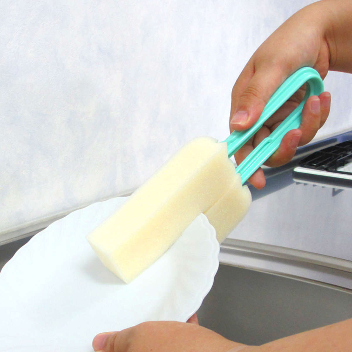 手肌を守る、触れずに洗えるスポンジ