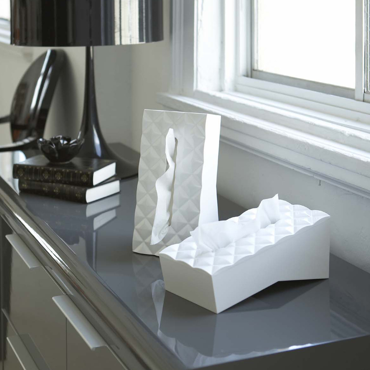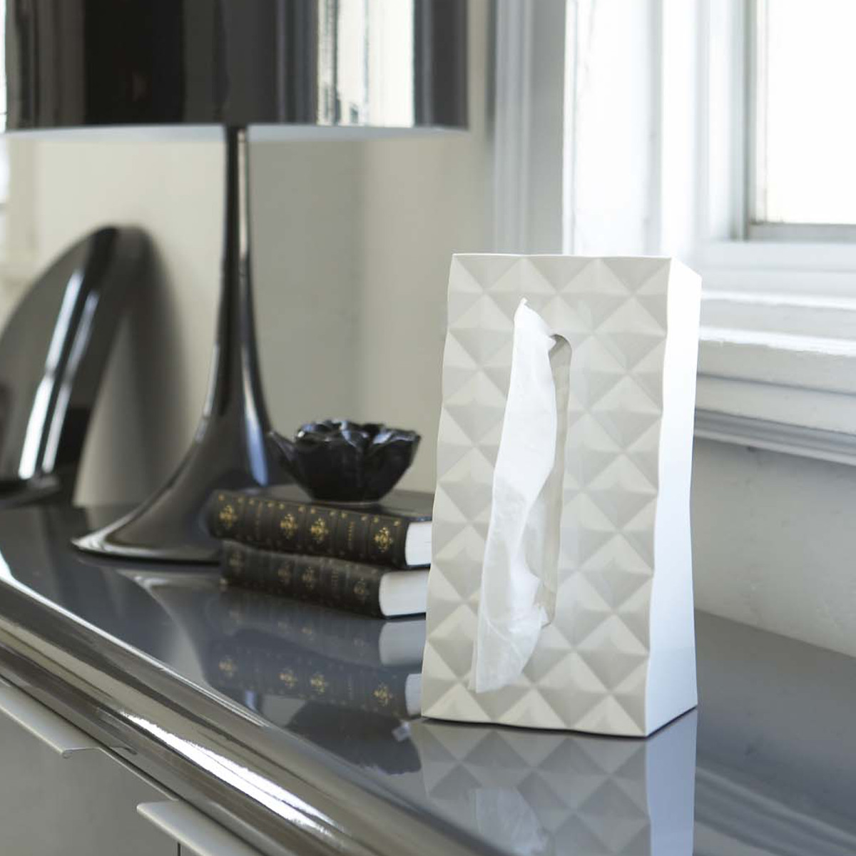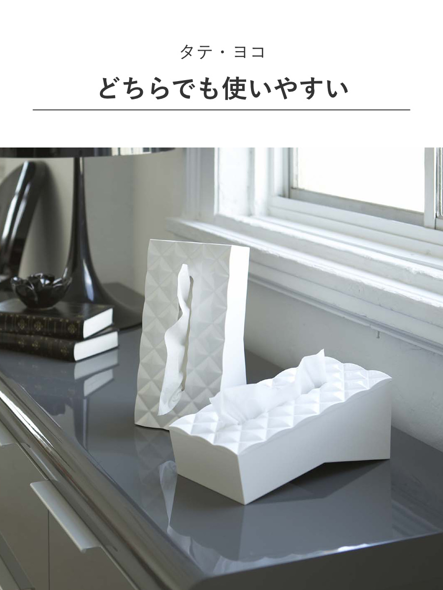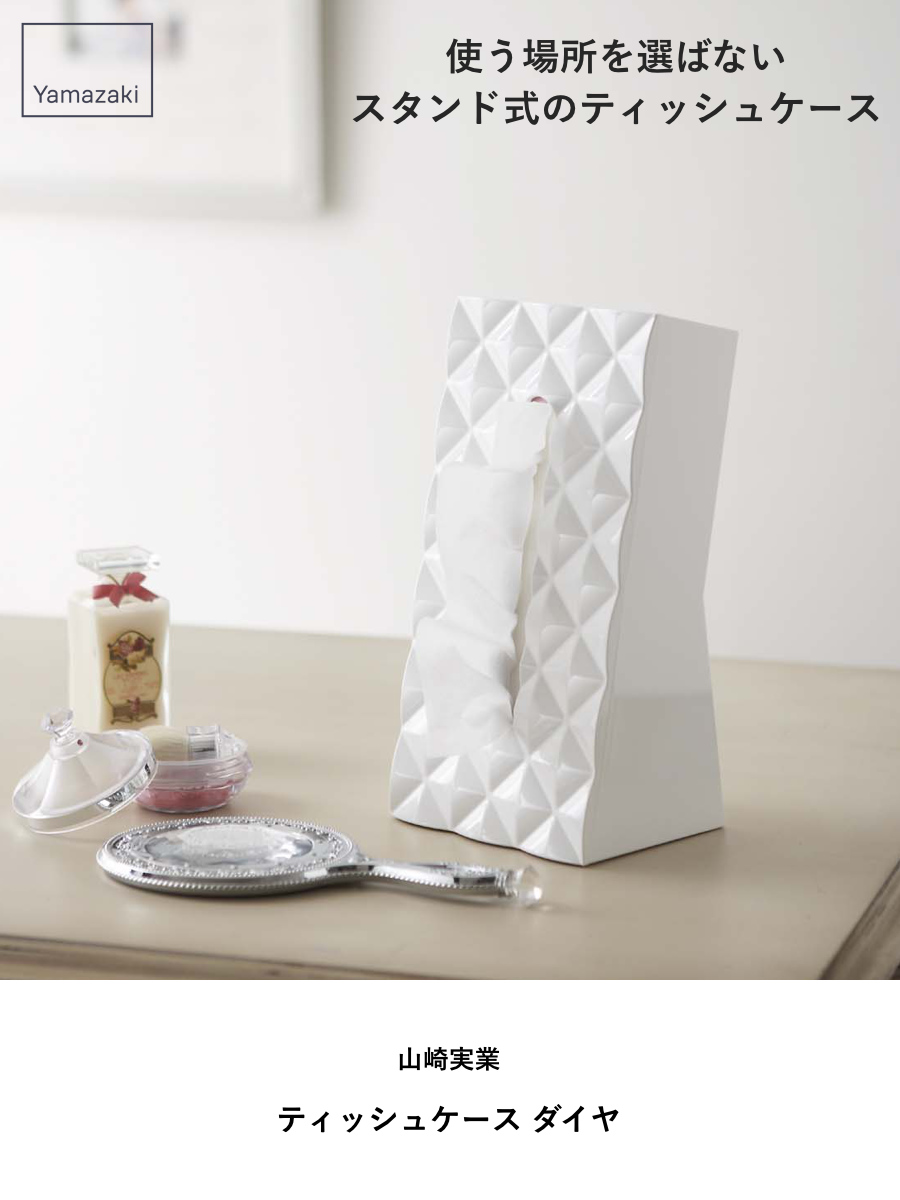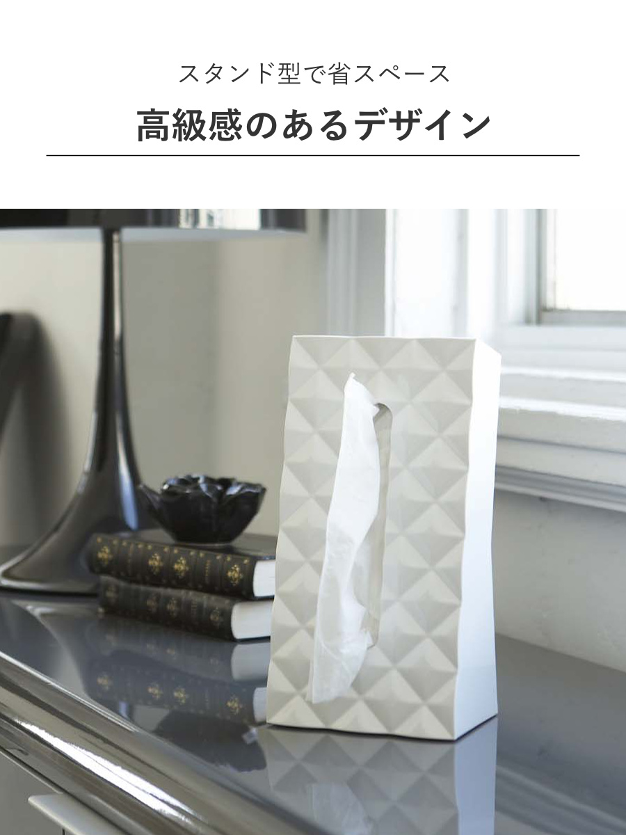 ダイヤカットされたデザインが素敵なスタンド型のティッシュケースです。縦型タイプなのでティッシュが取り出しやすく、省スペースで設置できます。