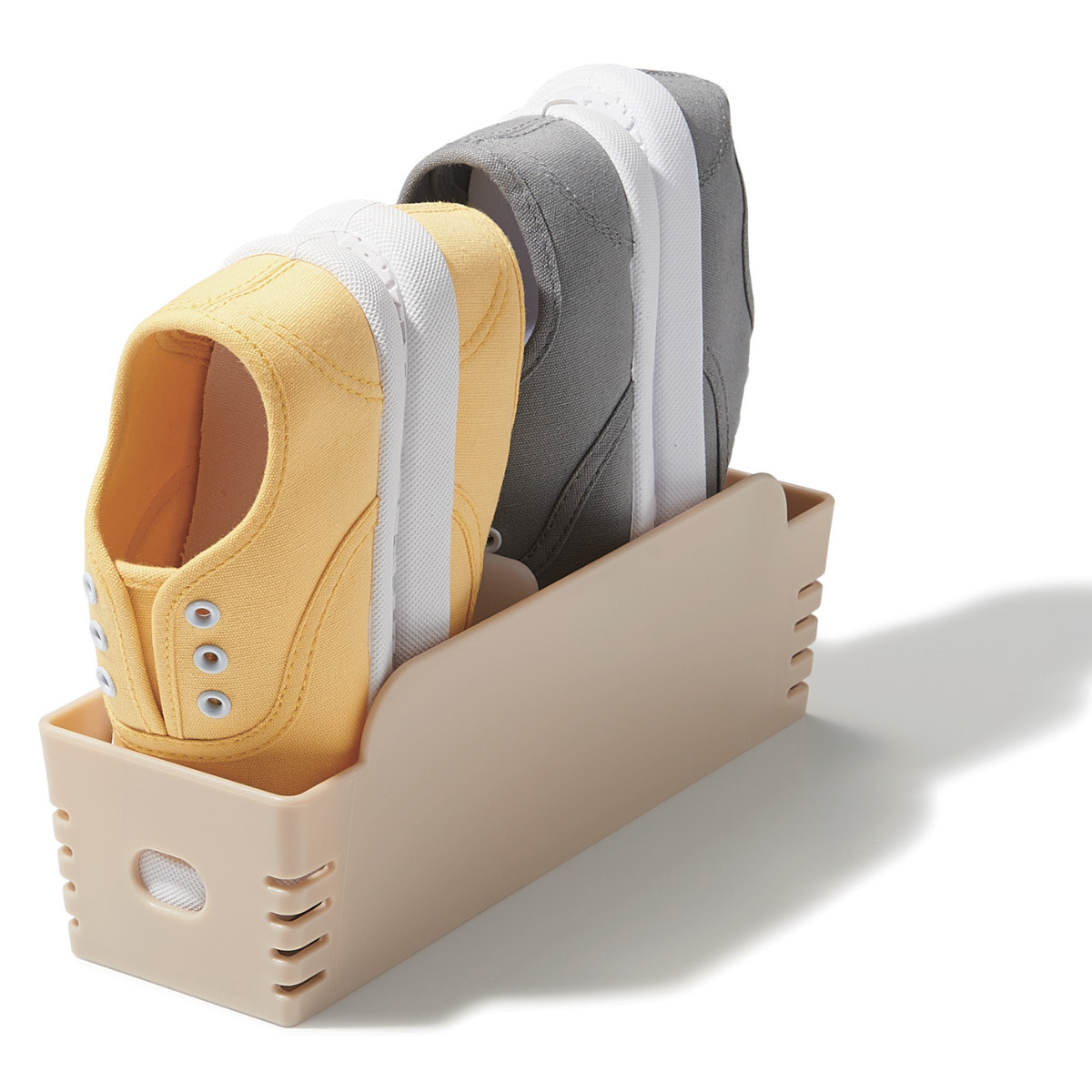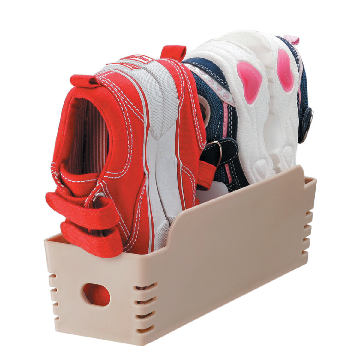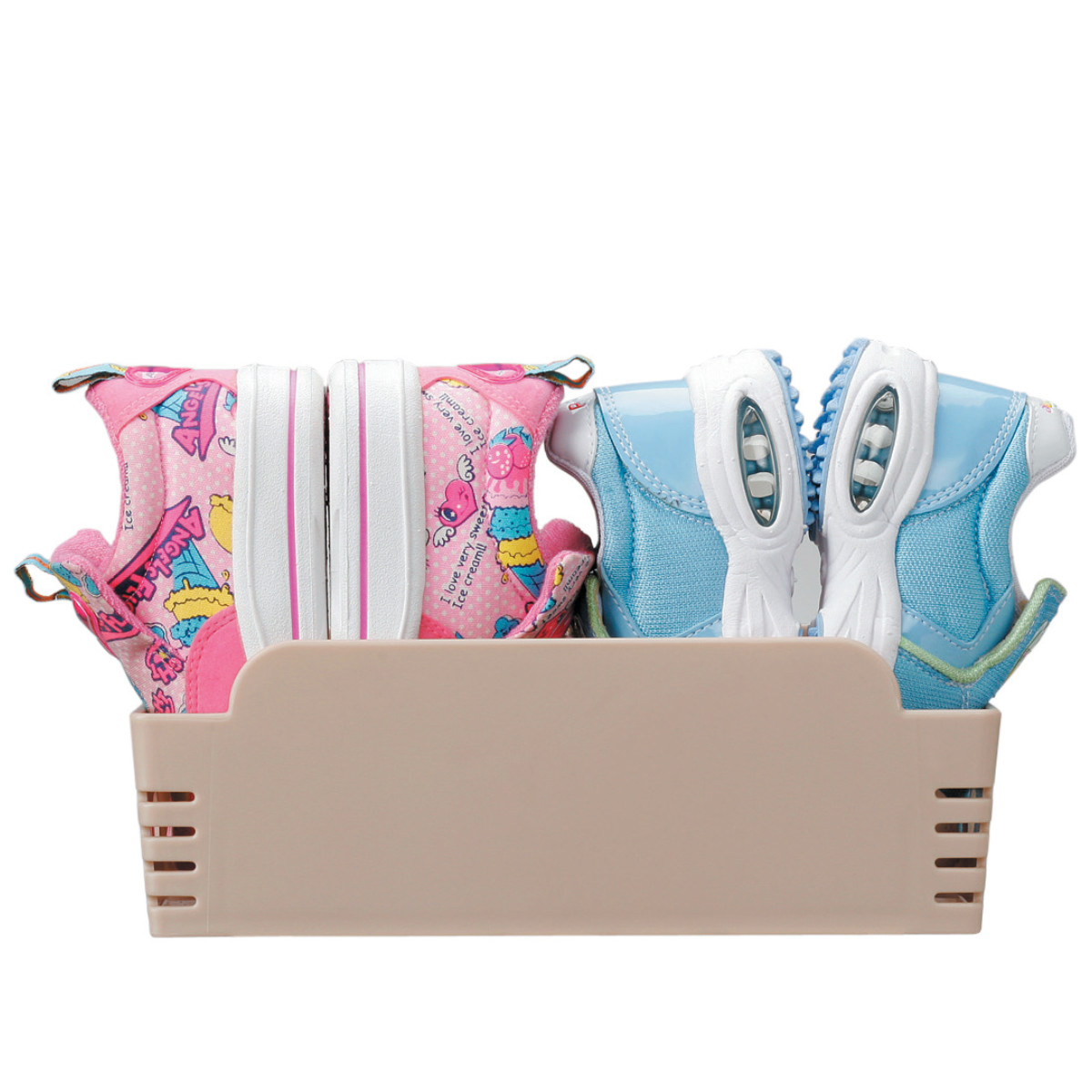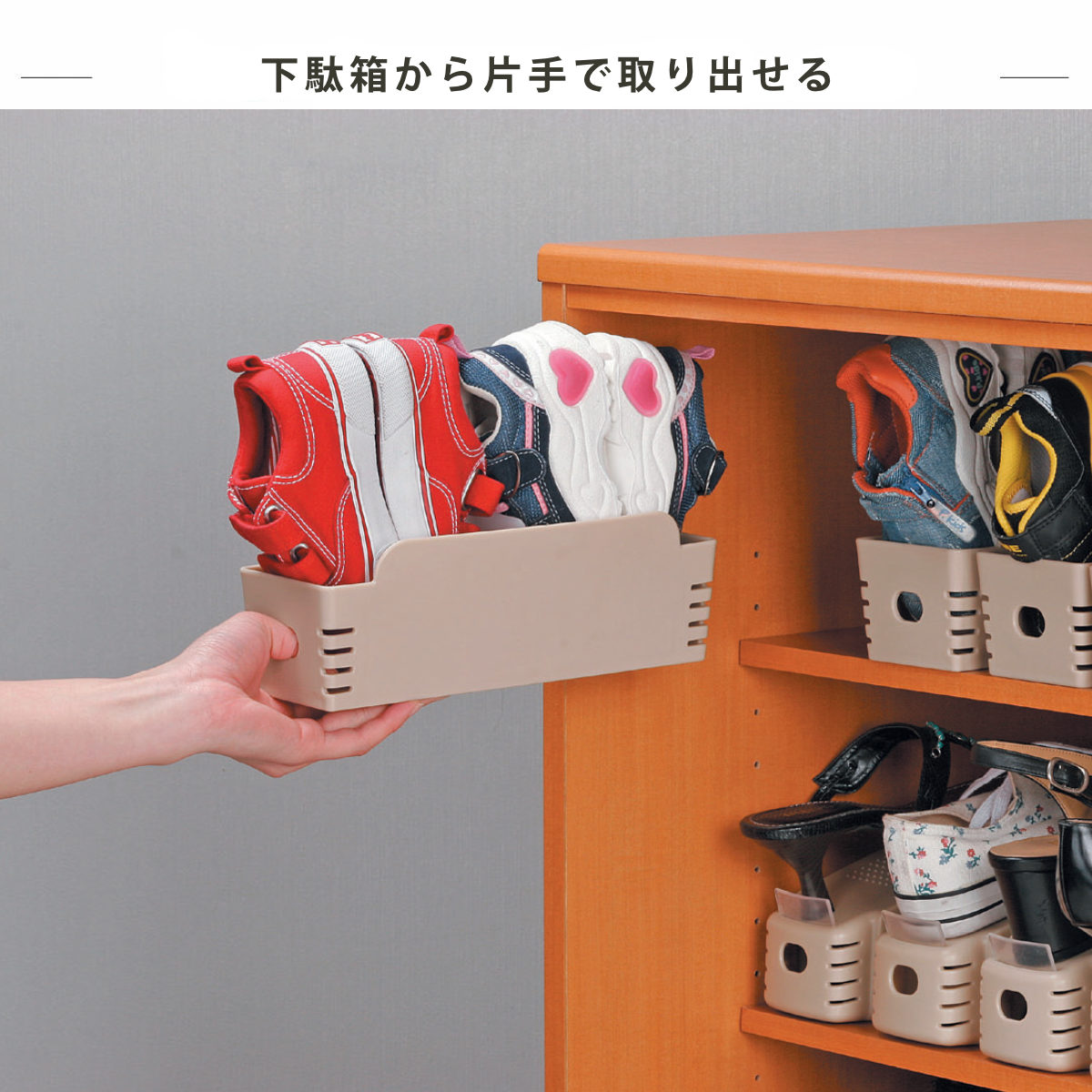 ベビーシューズから約18cmまでの子どもの靴を2足収納できる、くつホルダーです。収納力が2倍になり、下駄箱や玄関のスペースを有効活用できます。