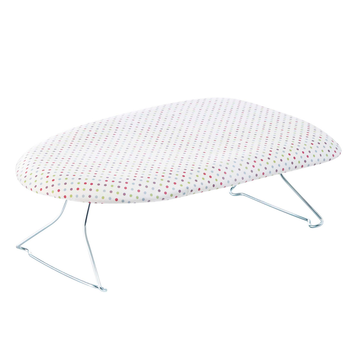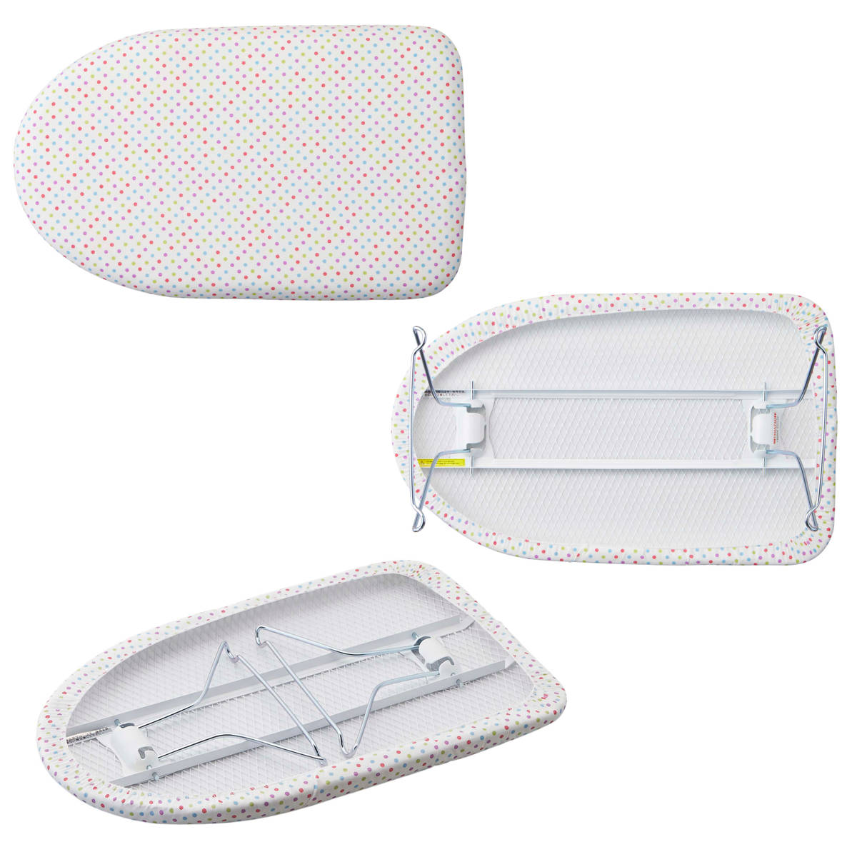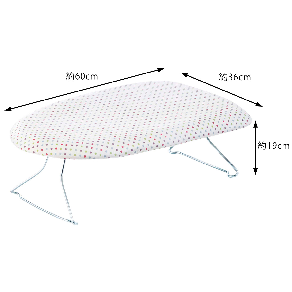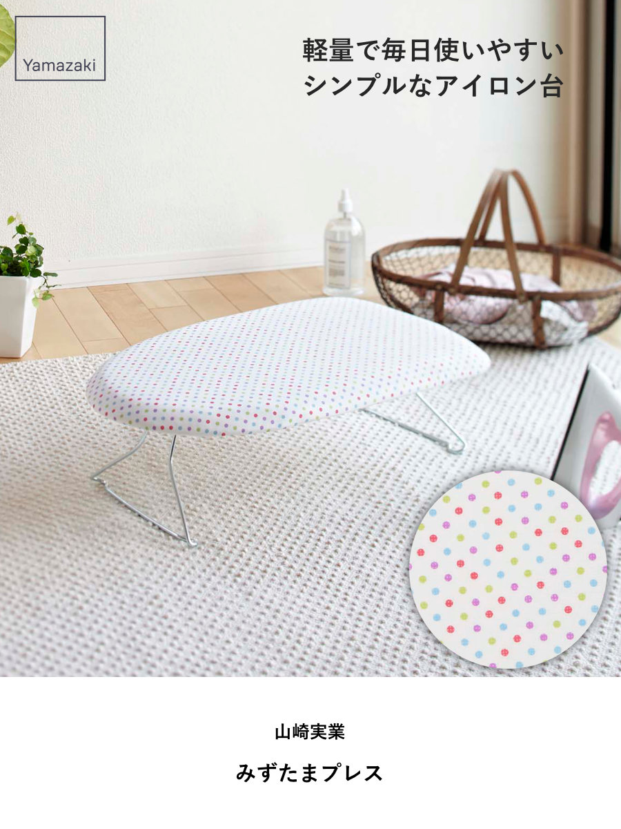 毎日のアイロンが楽しくなるかわいい水玉柄のシンプルなアイロン台です。軽くて持ち運びしやすく、出し入れも簡単です。脚は折り畳み式なので、使わないときは隙間に収納でき場所も取りません。