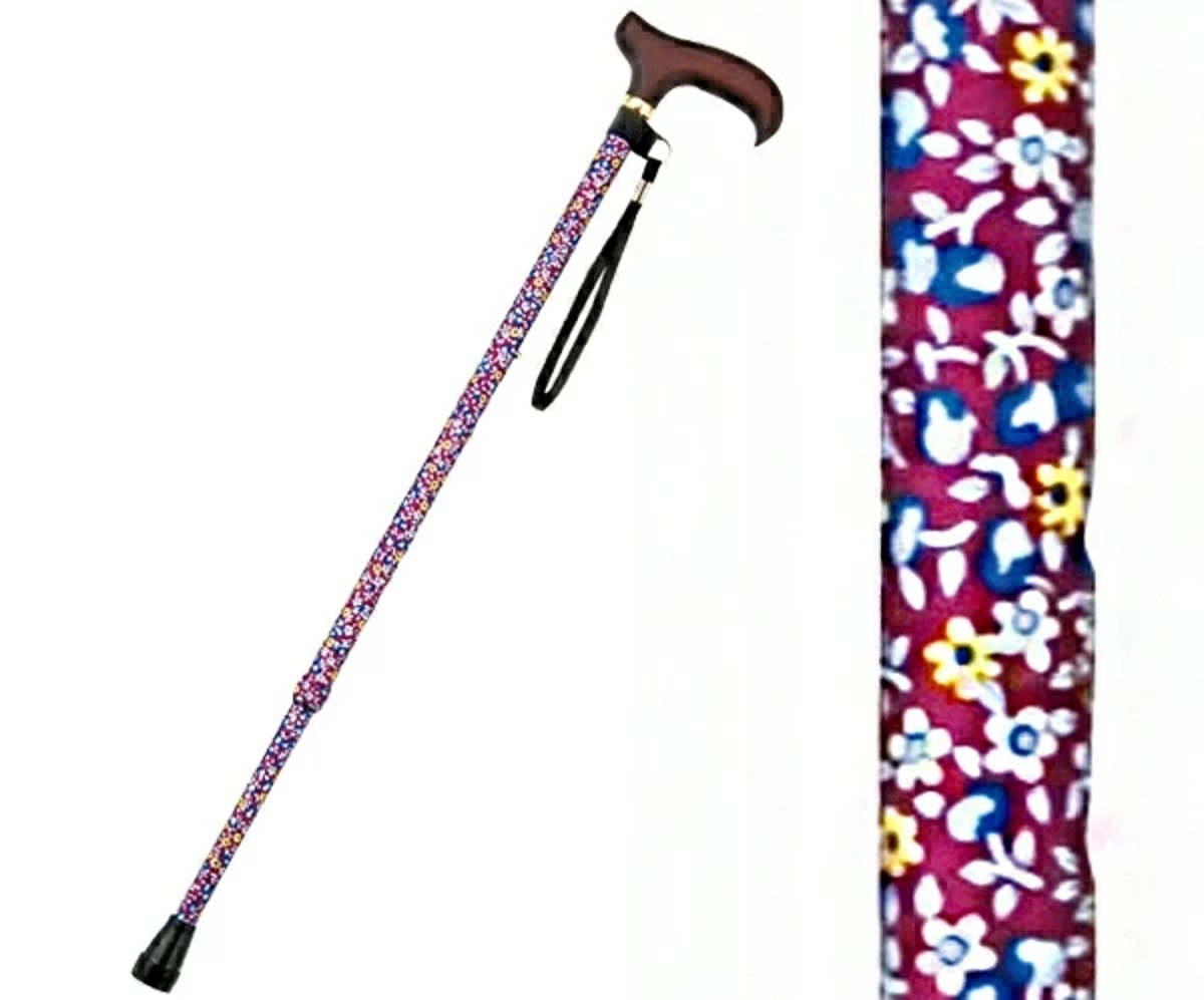 上品な花柄がおしゃれ、軽量アルミ製伸縮ステッキ