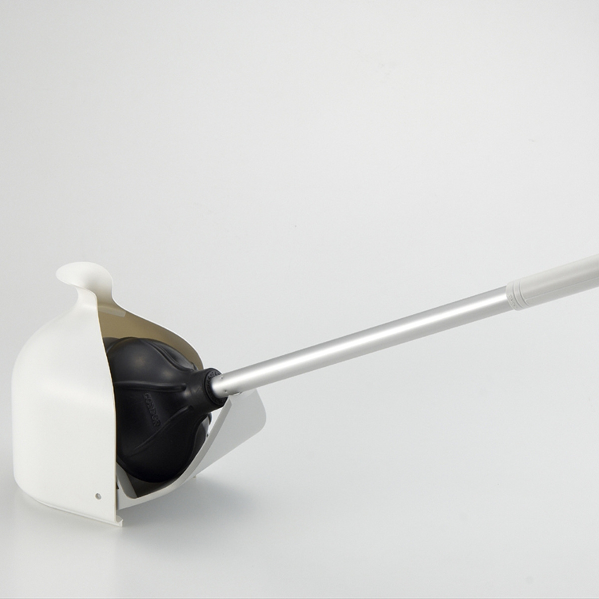 トイレ内にすっきり収納できるケース付きです。必要な時は柄を手前に倒すだけで簡単にケースから取り出せます。