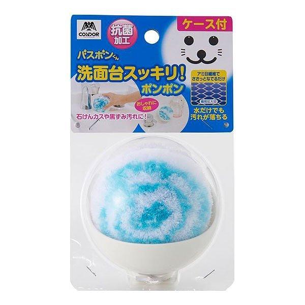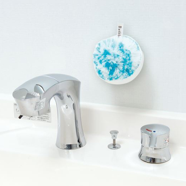 ●ポンポンみたいなまぁるいクリーナーです。洗面台の石鹸カスや黒ずみ汚れ、蛇口周りの湯あかも水をつけてこするだけ!