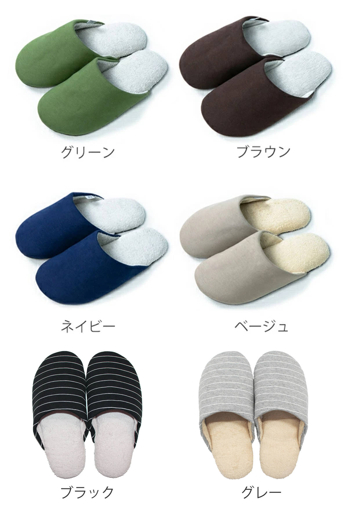 お部屋になじみやすい無地とシンプルなボーダーをご用意しています。MとLの2サイズ展開で、ご家族での使い分けにもおすすめです。