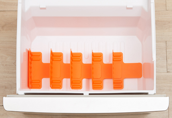 しっかりと連結させることができ、スライドもラクラクの仕切り板は、量が減ってもきちんと立たせることができ、スマートに整理できます。