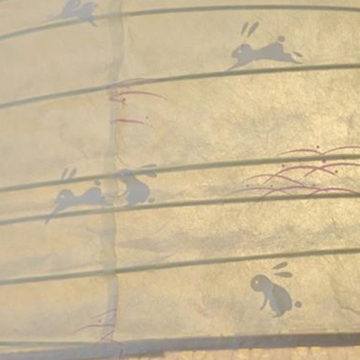 お椀型の2灯タイプの和風ペンダントライトです。うさぎの絵が可愛らしい柄です。
