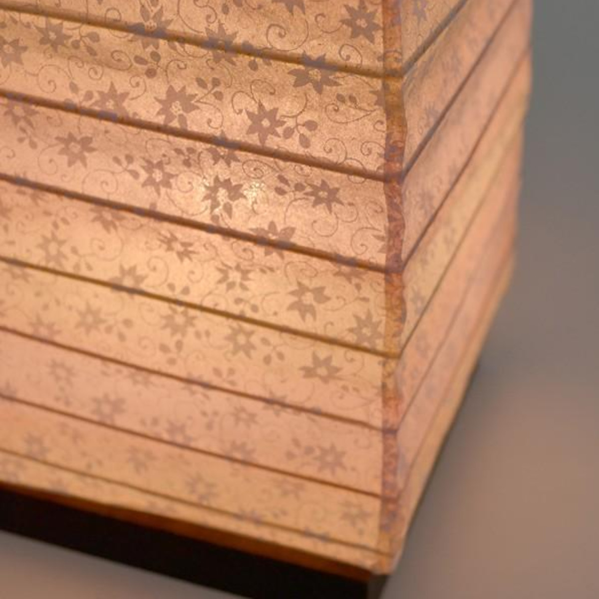 淡いピンク色のグラデーションの和紙に、百合の花を全体的に細かくあしらっている和紙の間接照明です。和室、客間、廊下など幅広くご使用いただけます。