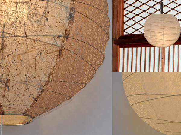 透かし和紙と揉みの入った上品な和紙のペンダントライト