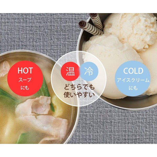 ●温かいスープや冷たいアイスクリームの食べ頃&飲み頃をキープする、真空断熱二重構造のステンレス製カップです。