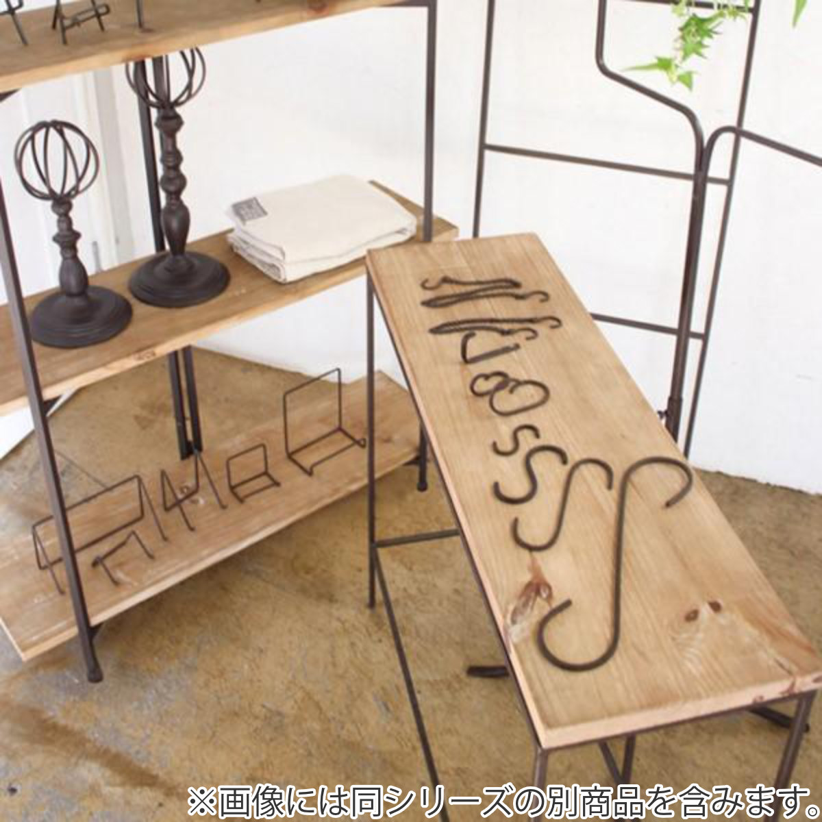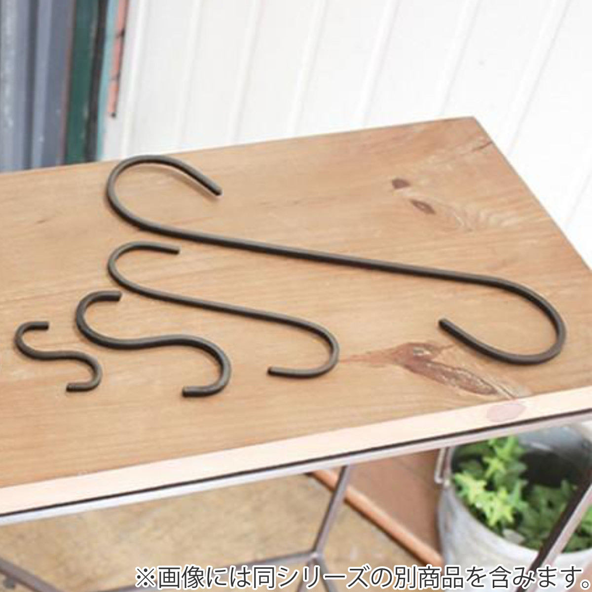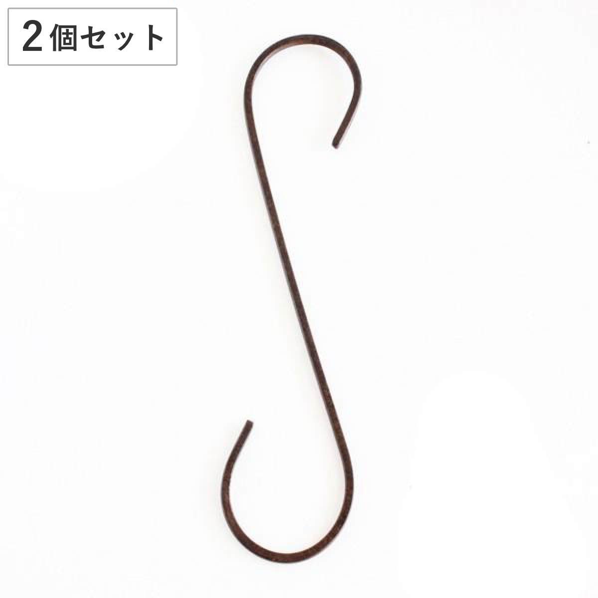 アンティークの風合いがある、アイアン製のS字フック2個入りです。すっきりとしたラインが魅力で、実用性も兼ねています。30cmとロングタイプなので、植物のハンギングなどにも最適です。