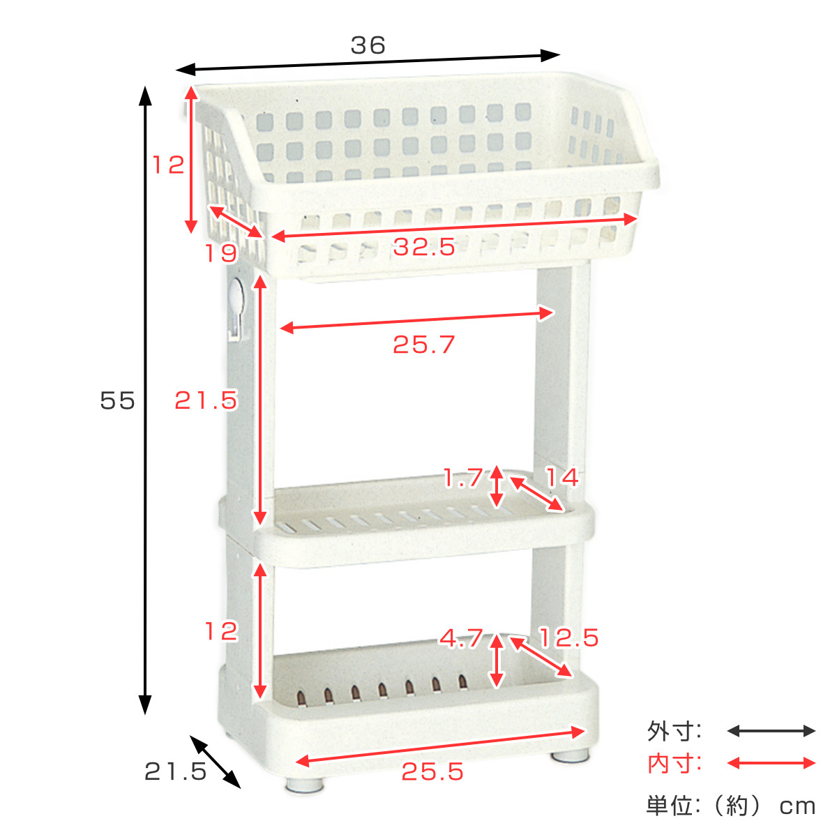 - 約幅36×奥行21.5×高さ55cm