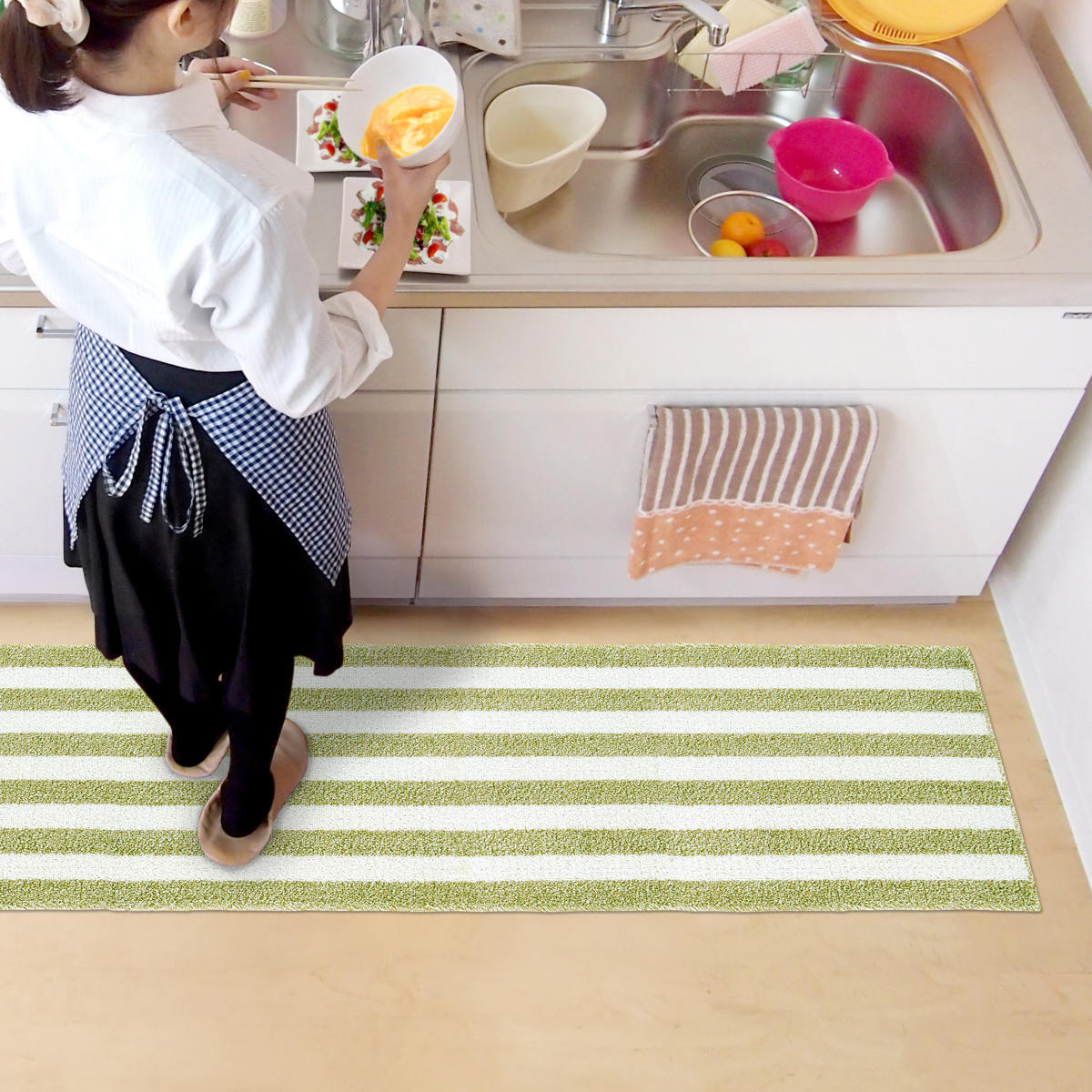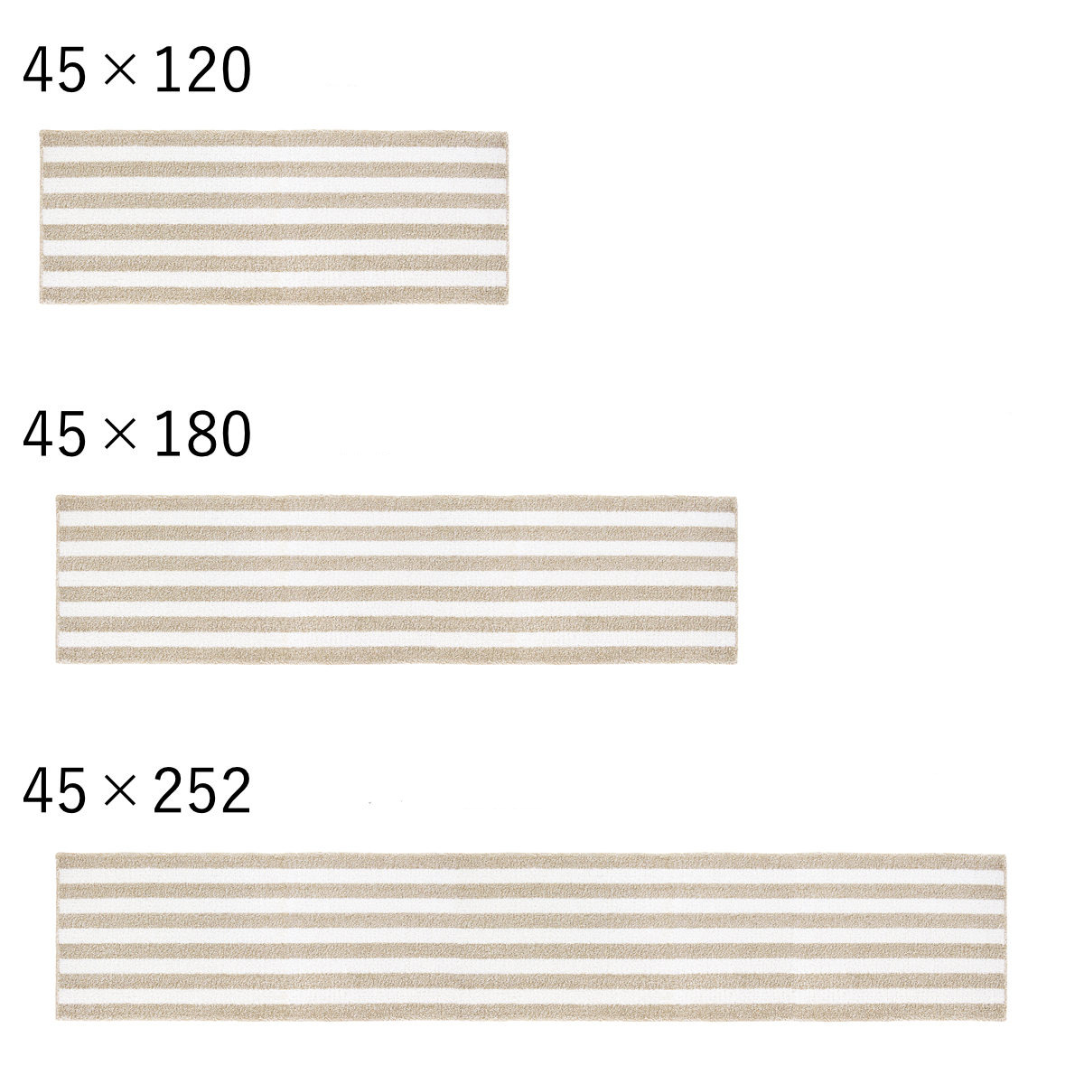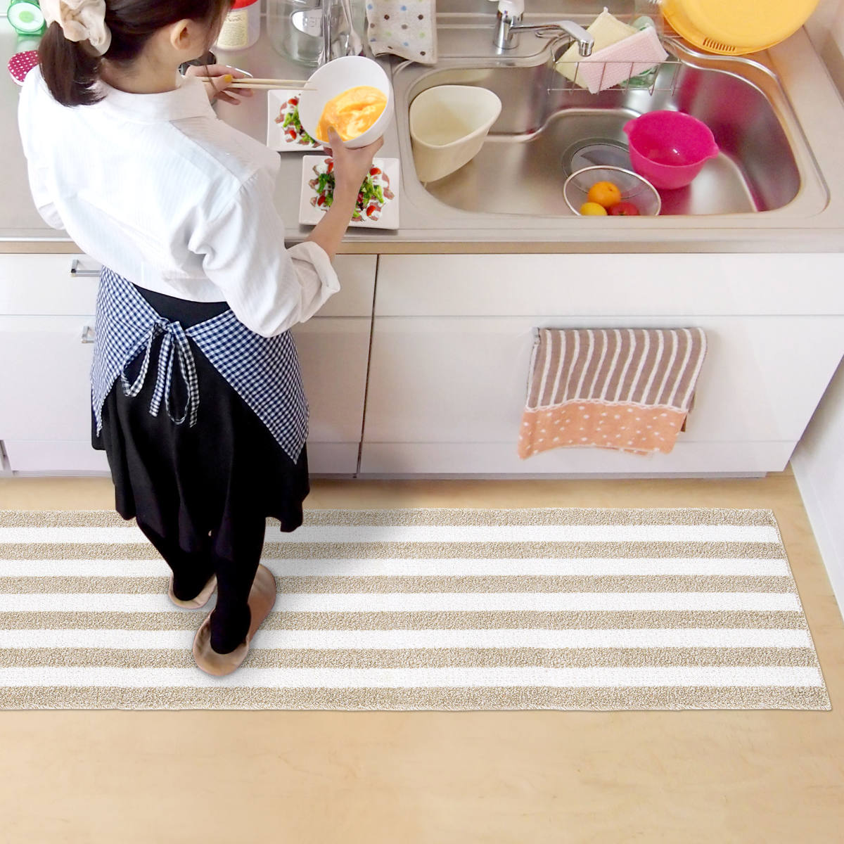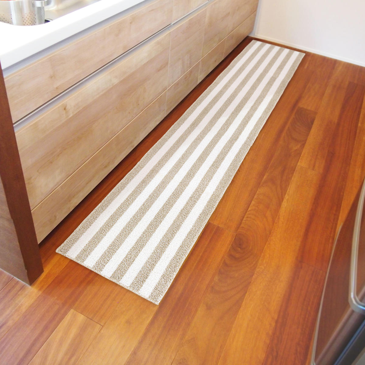 キッチンにも馴染むベーシックな色とデザインの45×252cmキッチンマットです。シンプルがいいけど、無地じゃ味気ないと感じる方にぴったりです。落ち着きのある色とデザインは、キッチンはもちろん、玄関や寝室などにもマッチします。