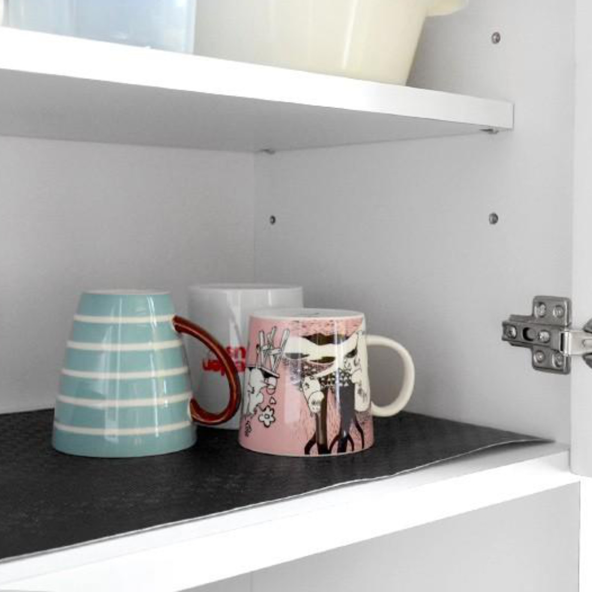 幅30cmと食器棚にちょうど良いサイズの棚敷きシートです。シート表面のフィルムに竹炭の粉末が配合してあるので、不快な臭いを消し、雑菌や裏面のカビの繁殖を抑えてくれます。