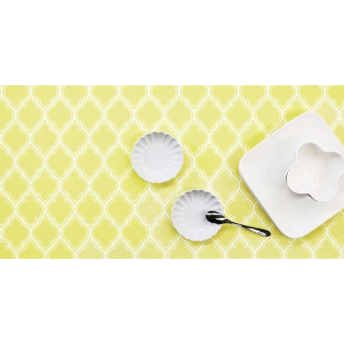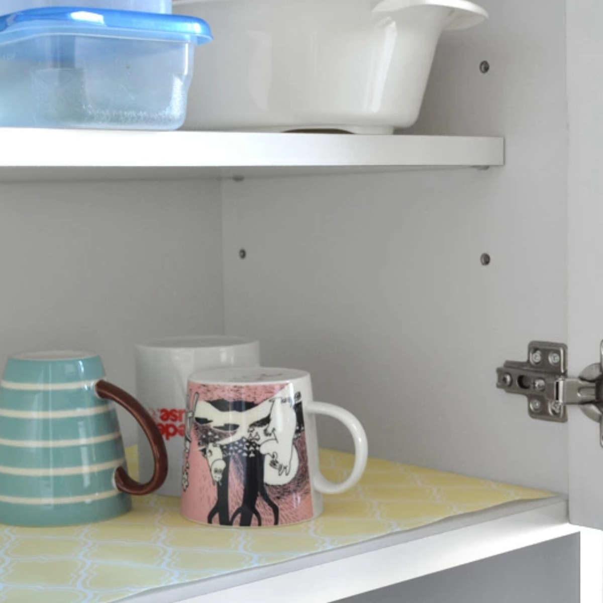 ●落ち着いたクリーム色の幾何学的な柄で、キッチンをおしゃれに彩ります。