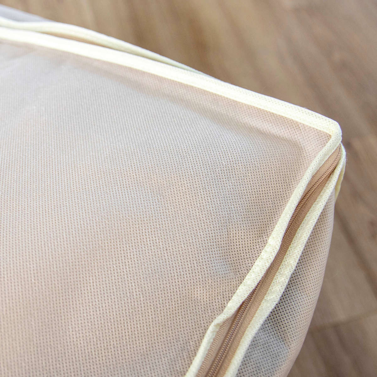 通気性に富んだ素材の不織布は湿気がこもりにくいのが特徴です。カビやニオイが発生しにくく保存用に適しています。来客用の寝具の長期保管も安心です。