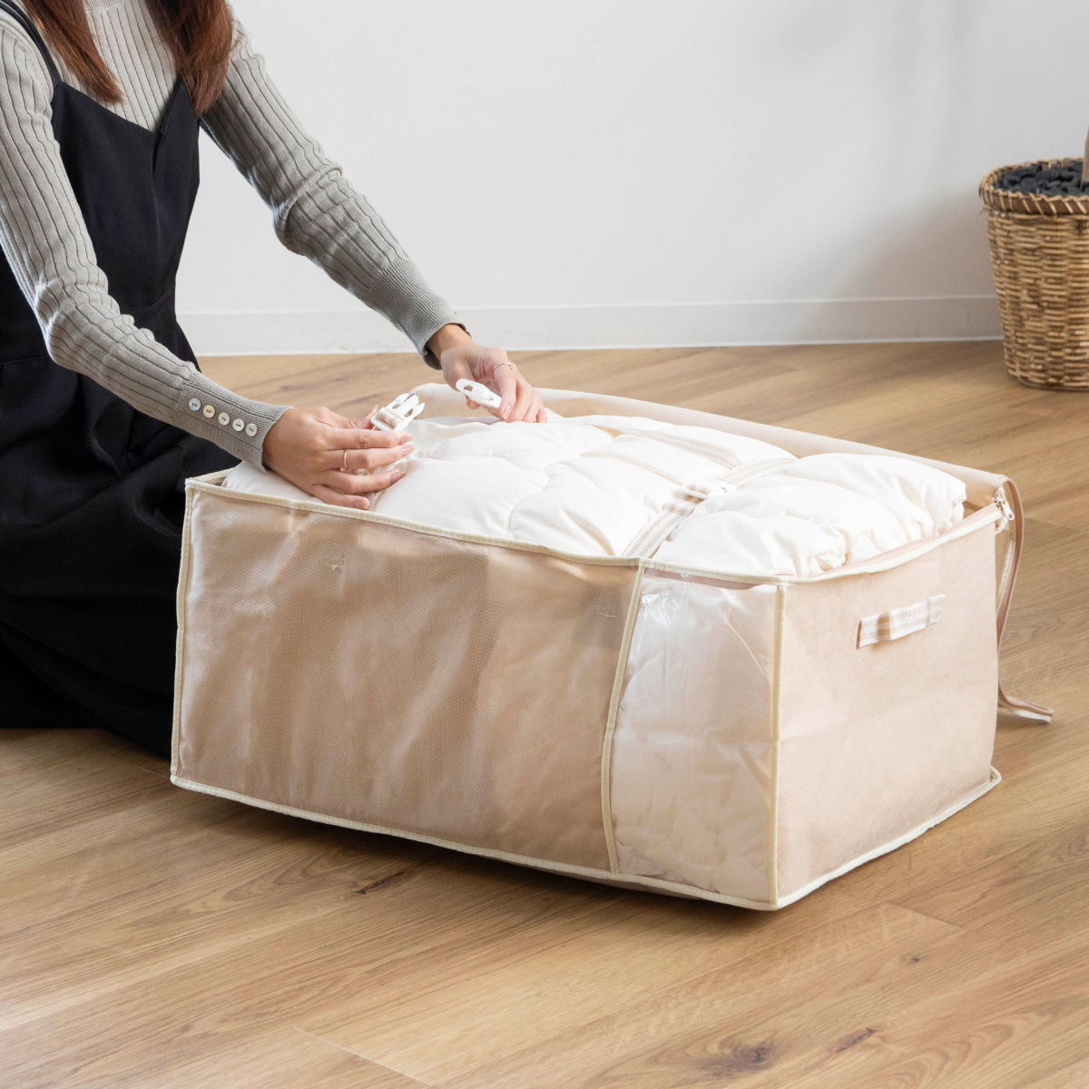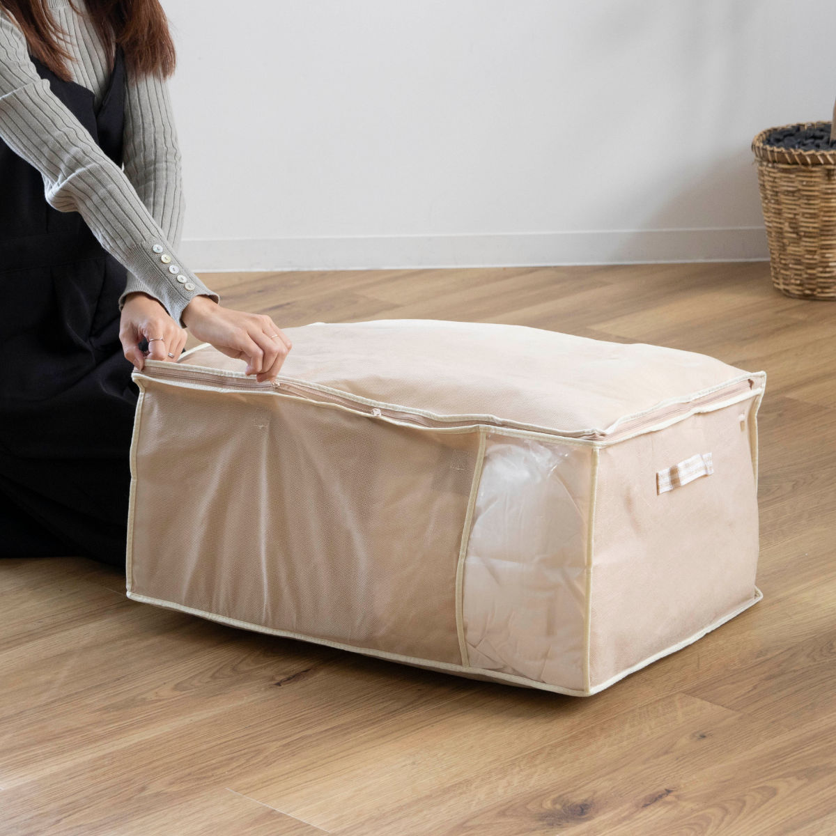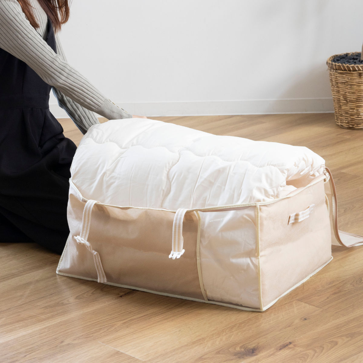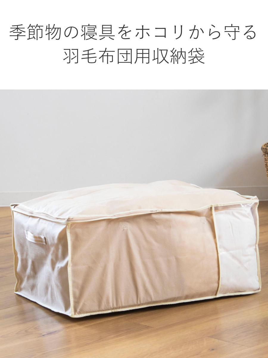 羽毛布団の収納にピッタリな収納袋です。不織布のやわらかい生地で収納物をやさしく守り、ホコリやゴミをしっかりガード。清潔に保ちながら大切に収納できます。